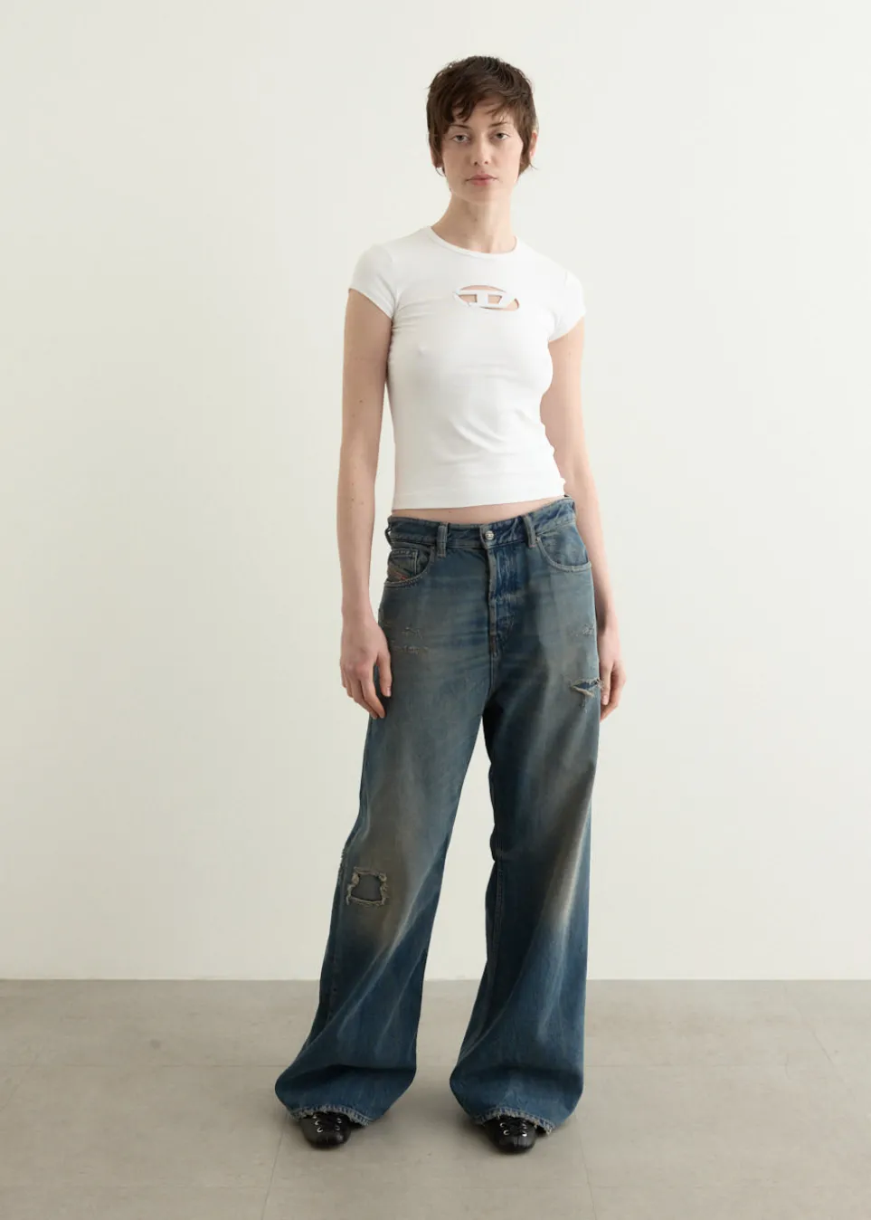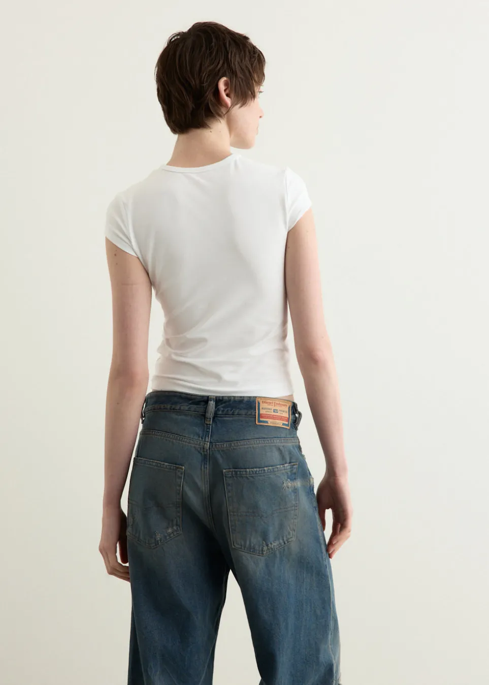 Founded in 1978, Diesel is rooted in denim mastery, known for their nostalgic Y2K-inspired pieces to create a chic yet casual look. Sporting denim-heavy designs in their rebellious yet playful collections. Crafted from a cotton blend fabric with stretch, the T-Angie T-Shirt tailored to a slim fit. It features a peekaboo ‘Oval D’ logo on the chest made with a laser-cutting technique.
