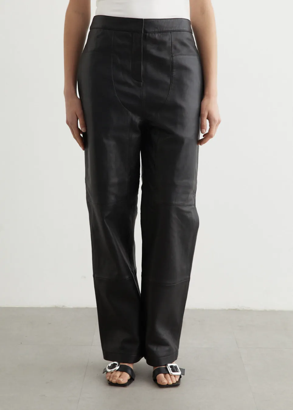 Launched in 2015, New Zealand-based label Paris Georgia brings a unique combination of clean lines, luxurious fabrics, and subtle hues to its offerings of timeless ready-to-wear pieces celebrating the beauty of the female form. Constructed form soft lamb leather, the Tia Leather Pants are cut to a straight fit, detailed with panelled legs and a side seam pocket.