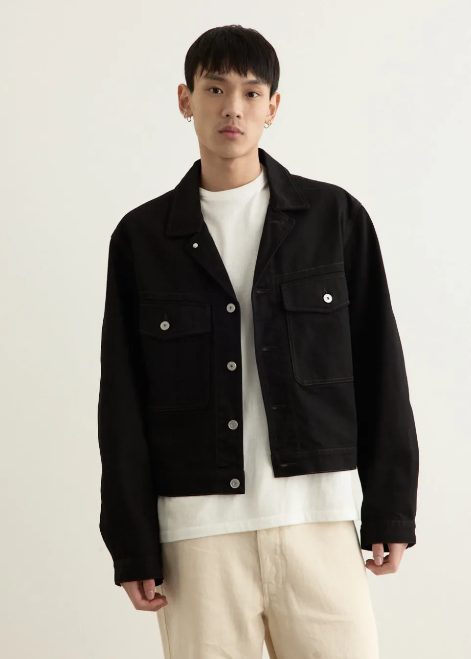 Helmed by Christopher Lemaire and Sarah-Linh Tran, the Lemaire brand offers timeless Parisian style that is sophisticated, inclusive and rich in cultural influence. A signature silhouette from the label, the Trucker Jacket is crafted from heavyweight denim with a pronounced twill weave. Designed with a structured yet relaxed fit, it features a traditional workwear collar, full button-down front, and utilitarian detailing throughout. Two oversized chest patch pockets with flap-and-button closures add function and character, while adjustable buttoned cuffs and back waist tabs lend a tailored finish.
