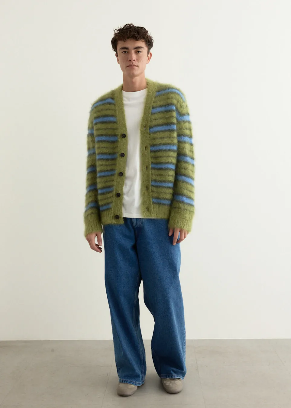 Marni balances luxury with sophistication and a subtle touch of humour. The Italian fashion label has delivered idiosyncratic designs since 1994. Knitted from a soft mohair blend, the V-Neck Long Sleeve Cardigan is cut to a relaxed fit with an all-over striped pattern.