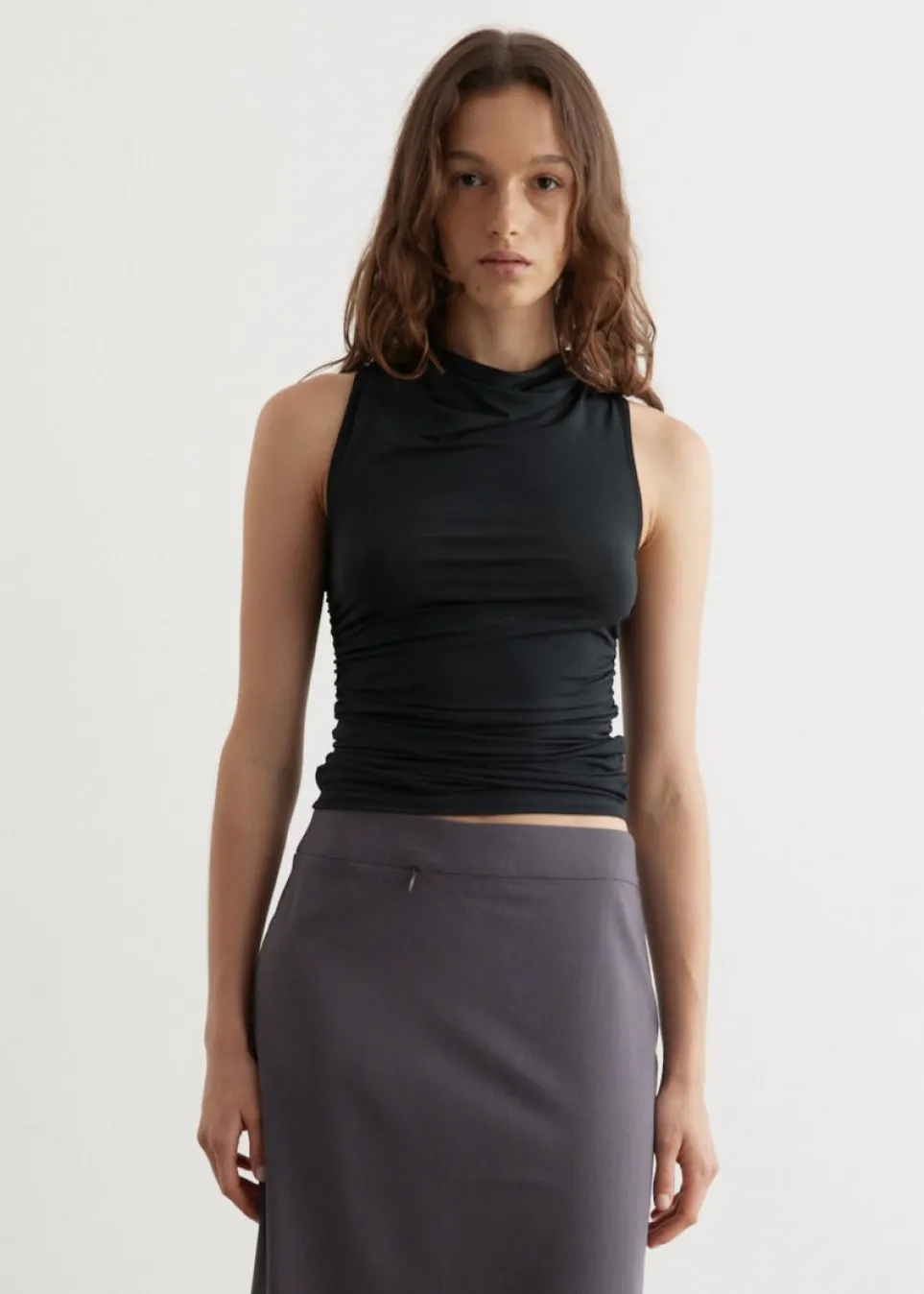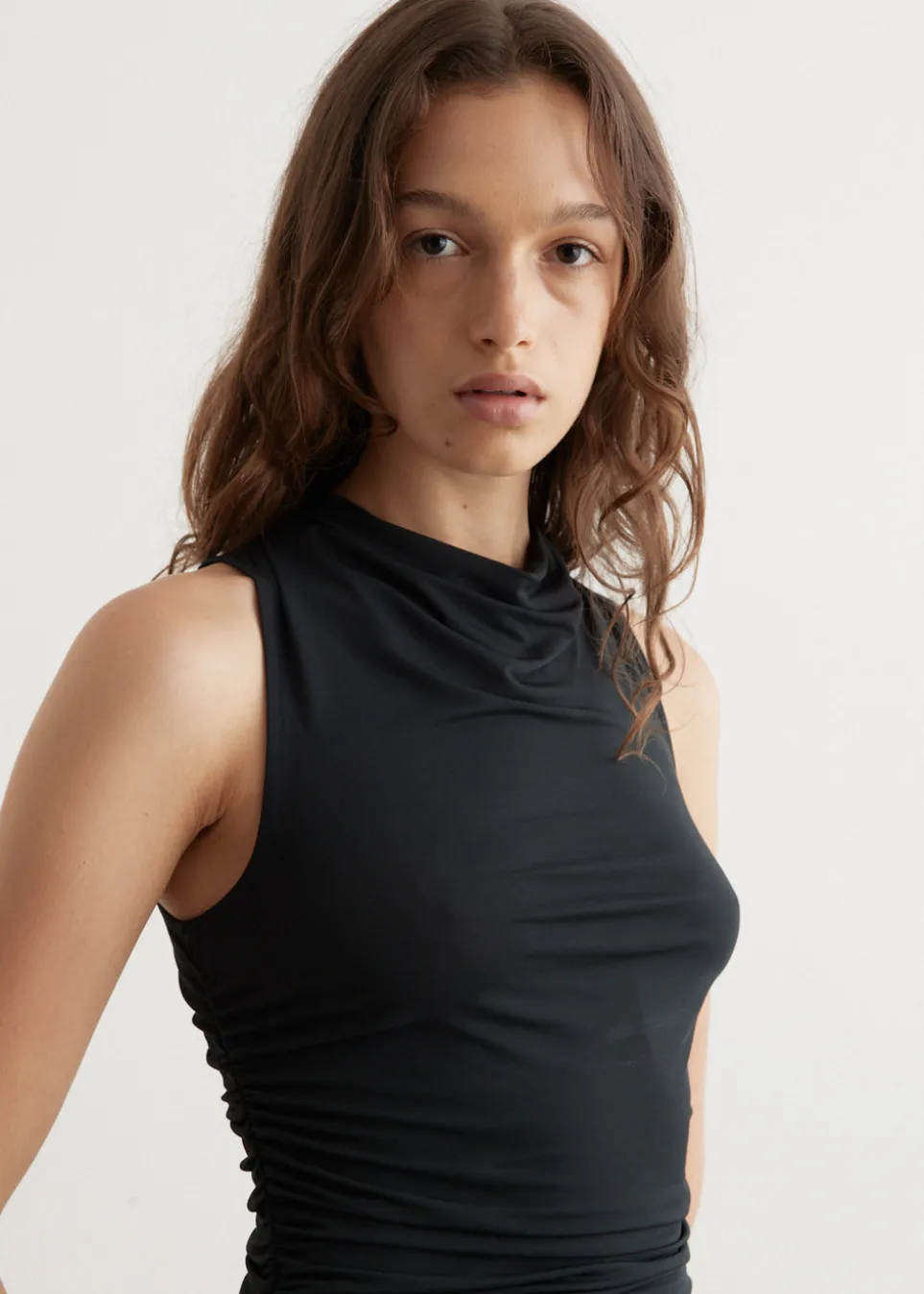 Barcelona-based brand Paloma Wool is renowned for its artisanal quality, retro silhouettes and the art of getting dressed. Crafted from smooth stretch viscose, the Vamos Top features a draped neckline with ruching on the sides.