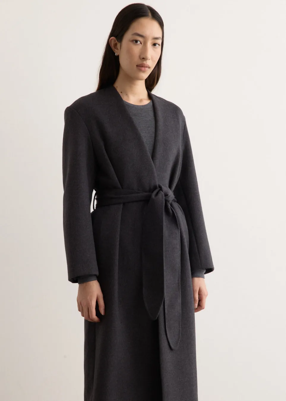 Renowned for its considered footwear, A.EMERY has expanded into ready-to-wear, offering timeless, versatile pieces. Founded in Melbourne with a focus on refined minimalism and premium materials, the brand embodies understated elegance season after season. Crafted from a luxurious wool blend, the Veronique Coat is tailored to a relaxed fit. Featuring a collarless design, belted waist tie, centre back vent and generous pockets set within the side seams.