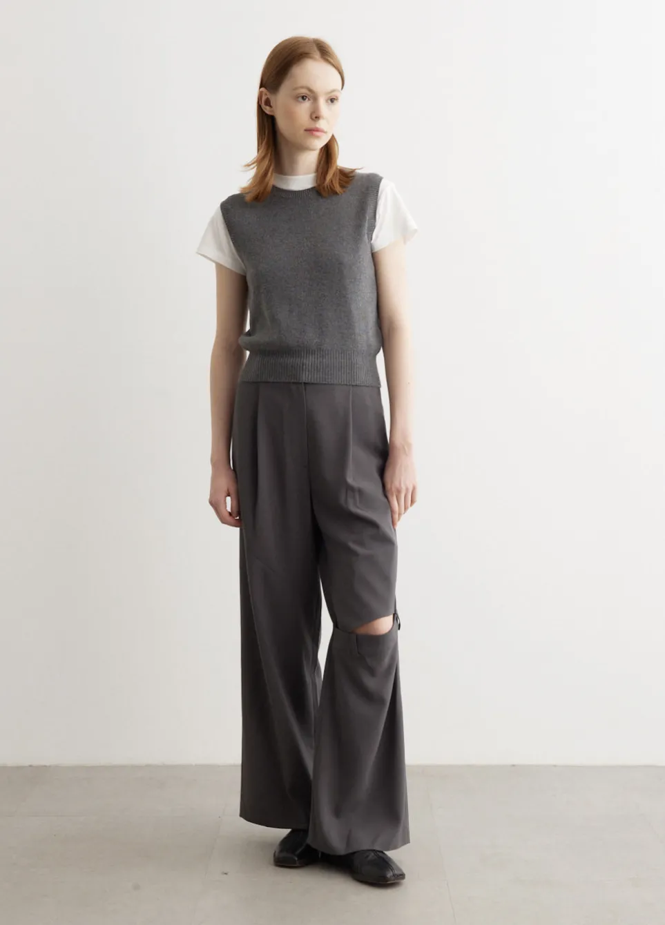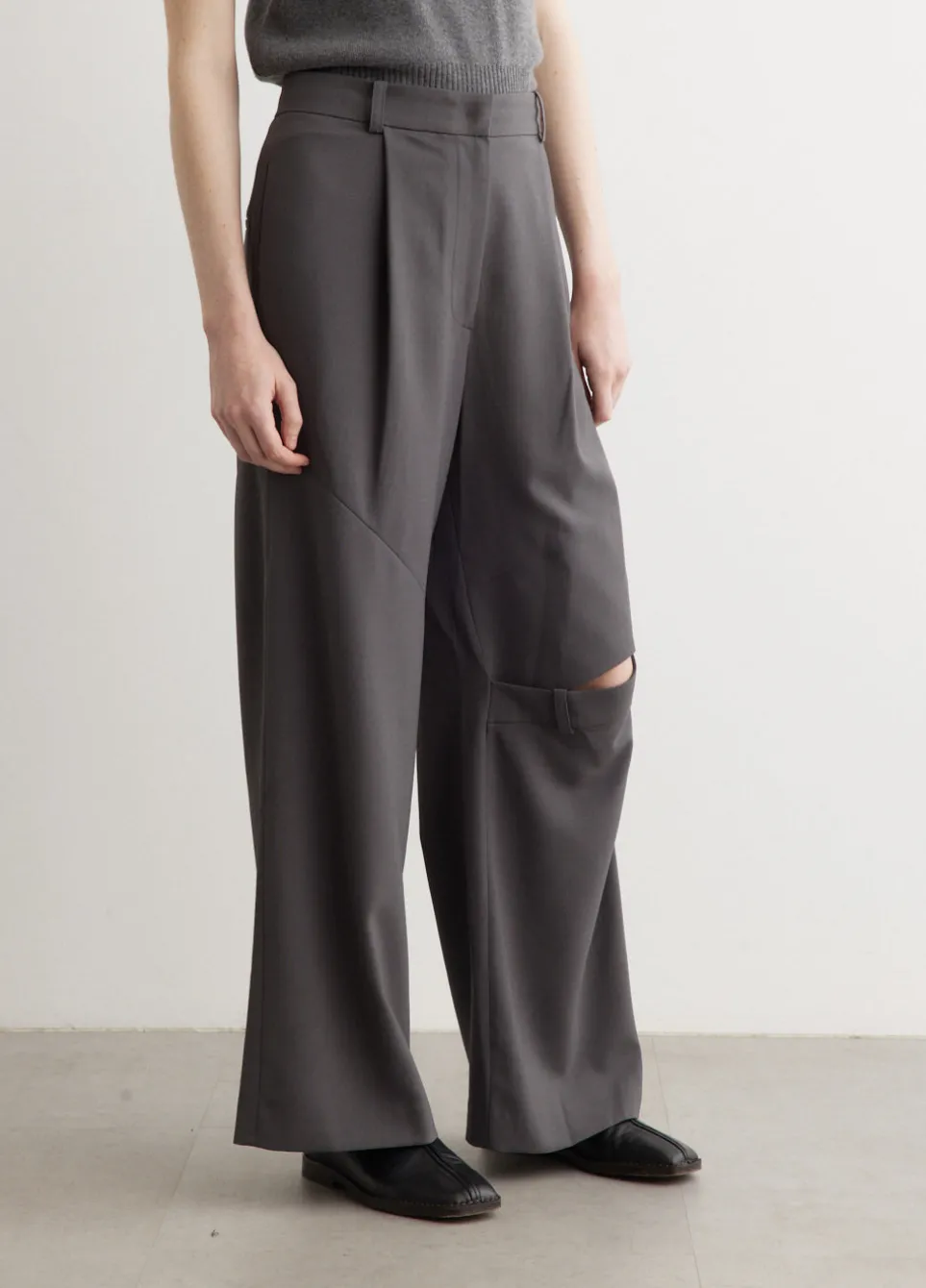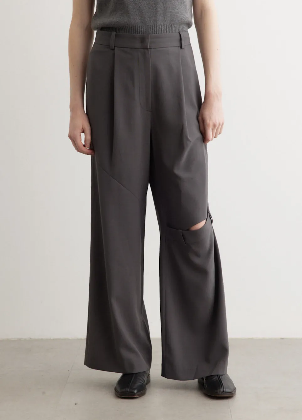 Birthed in Seoul, Low Classic’s philosophy revolves around beauty through simplicity and is delivered via updated, classic silhouettes. The Wild Folding Pants are cut to a wide leg with a mid-rise fit. It features a knee cutout on the left leg for an elevated touch.