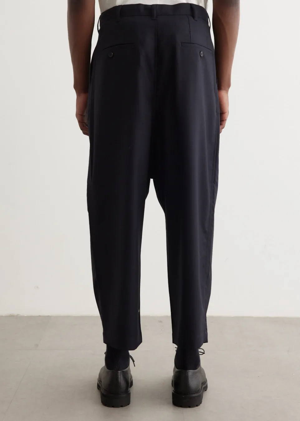 Comme des Garçons Homme present an elevated staple with understated branding, ideal for everyday wear. The Wool Gabardine Dropped Trousers are crafted from pure wool. Adorned with a front pleat on the legs and a cropped length.