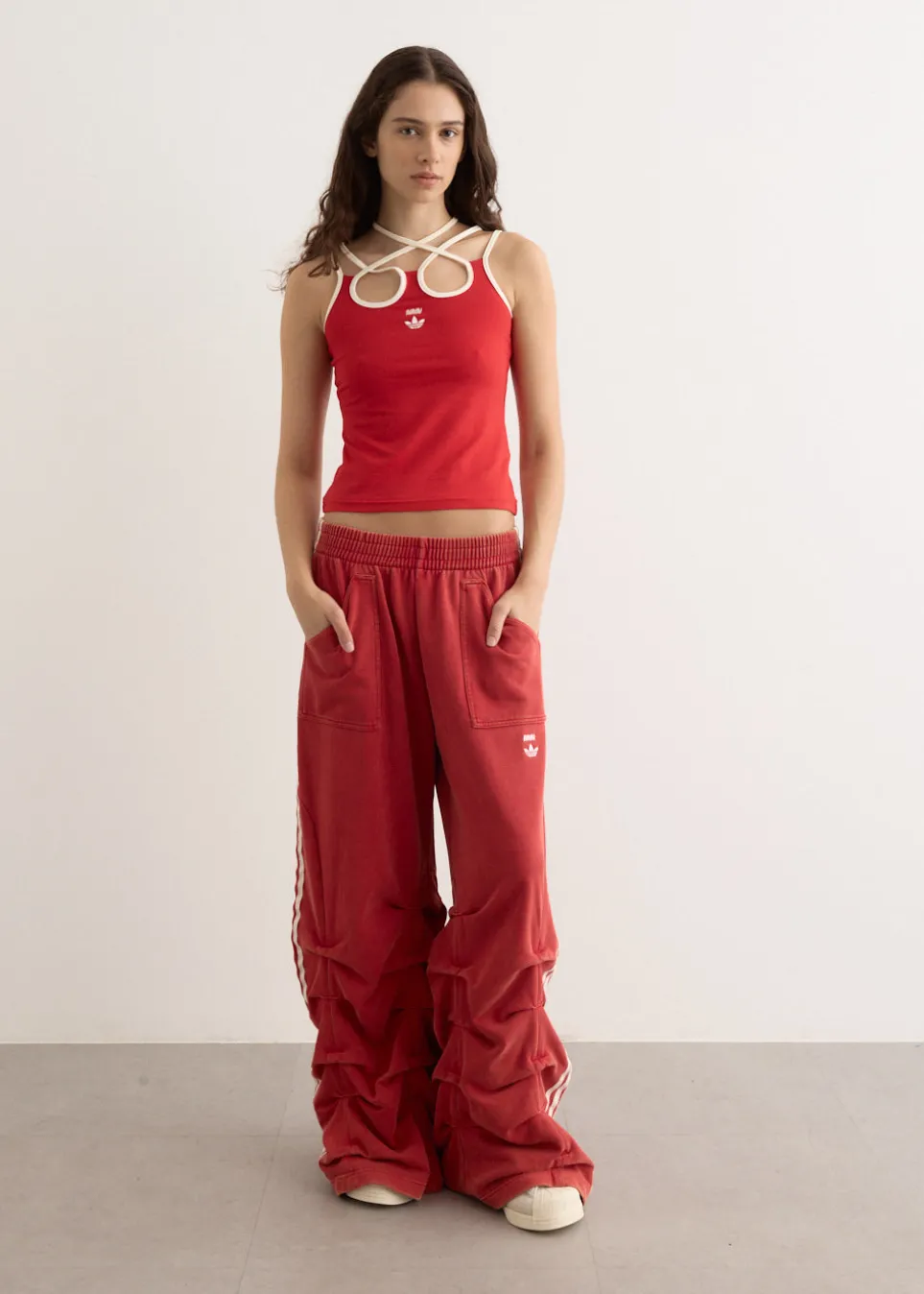 adidas Originals teams up with Avavav and its creative director Beate Karlsson, blending absurdity and humour with athletic style. Crafted from a stretch cotton blend, the x Cross Top showcases a striking crisscross strap detail across the front and back, bringing a bold twist to the neckline. A signature of the collaboration is prominently placed at the centre, finishing off this iconic Avavav look.