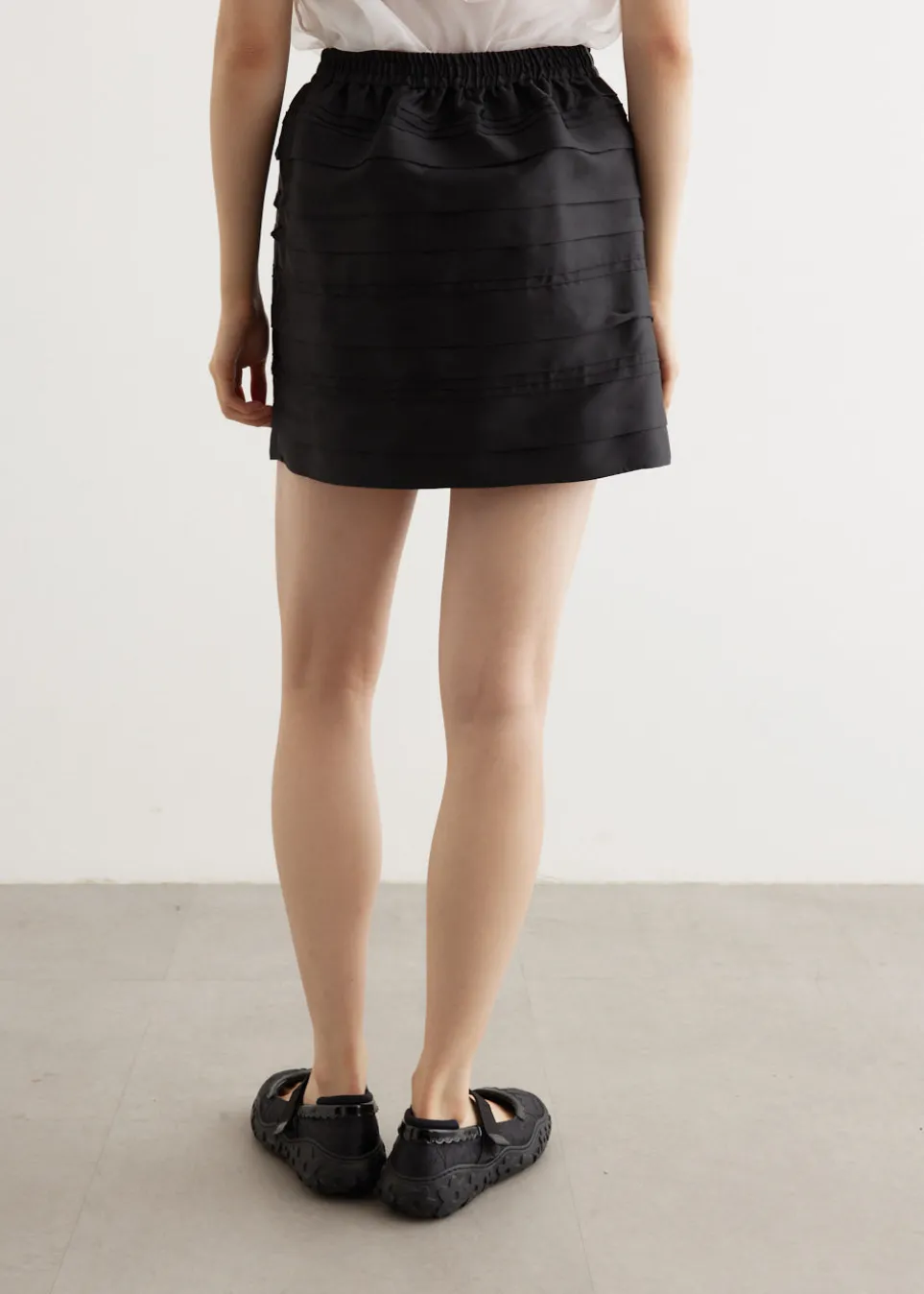 Cecilie Bahnsen partners with Nona Source to create a limited apsule collection, crafted from LVMH’s deadstock fabrics. The collaboration celebrates a shared dedication to sustainable design, reimagining iconic silhouettes and responsible craftsmanship. The Ocie Skirt is a versatile mini skirt with pin tucks for texture and an adjustable bow closure for a playful touch. Horizontal pleats create a tiered finish, adding movement and flair.