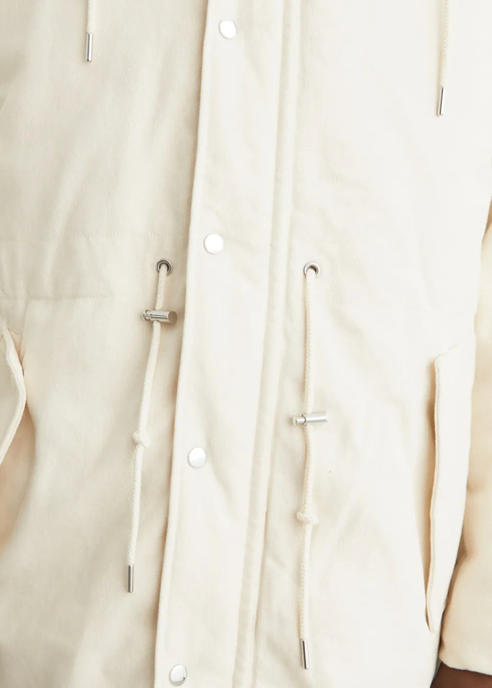– Drawcord waistline and hood