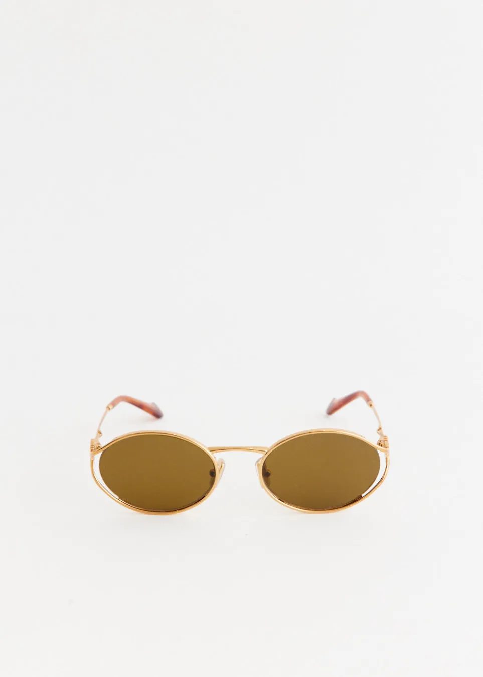 Miu Miu, founded in 1993 by Miuccia Prada, is a youthful luxury fashion brand under the Prada Group, known for its vibrant and innovative designs targeting a younger audience. The 0MU 52YS Sunglasses boast a thin metal design and an oval frame, paired with non-polarised tinted lenses for optimal vision and protection. The temples are adorned with branding for a polished touch.