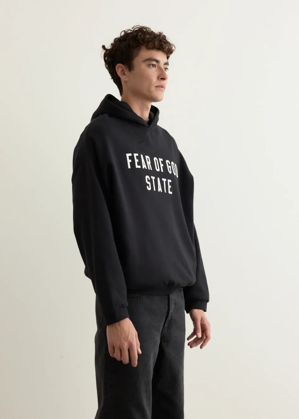 Launched in 2018 by Jerry Lorenzo, Fear of God: Essentials is a sub-label of his brand ‘Fear of God’, created to deliver minimalist, high-quality basics. Known for its neutral palettes, relaxed silhouettes, and everyday versatility, Essentials fuses streetwear with timeless design. Crafted from 380gsm core fleece, the 90s Fit Hoodie is cut to an oversized fit with dropped shoulders, a double-layered hood and side pockets. Features “Fear of God State” satin twill lettering branded across the front.