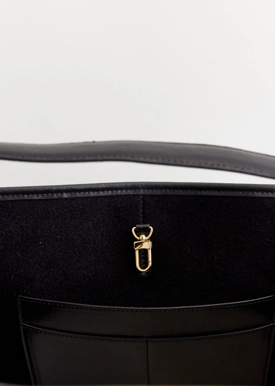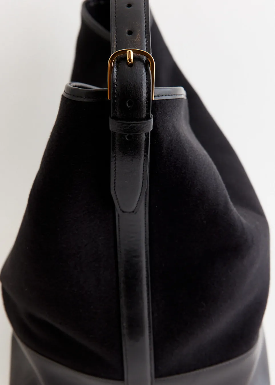 Founded in 2014 by Elin Kling and Karl Lindman, Toteme is a Stockholm-based brand renowned for crafting elevated essentials and timeless wardrobe foundations. The Belted Doublé Tote Bag flaunts the classic Belted Tote Bag silhouette, revisited with the brand’s signature wool doublé fabric. It features all the beloved characteristics including its loose, effortless shape that gracefully hangs against the body, a spacious interior with three slip pockets, a small clasp closure, and a slim belt-like strap, complete with an adjustable metal buckle.