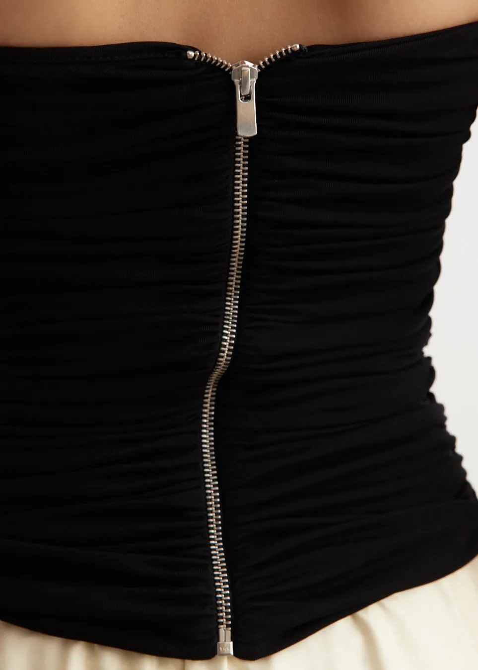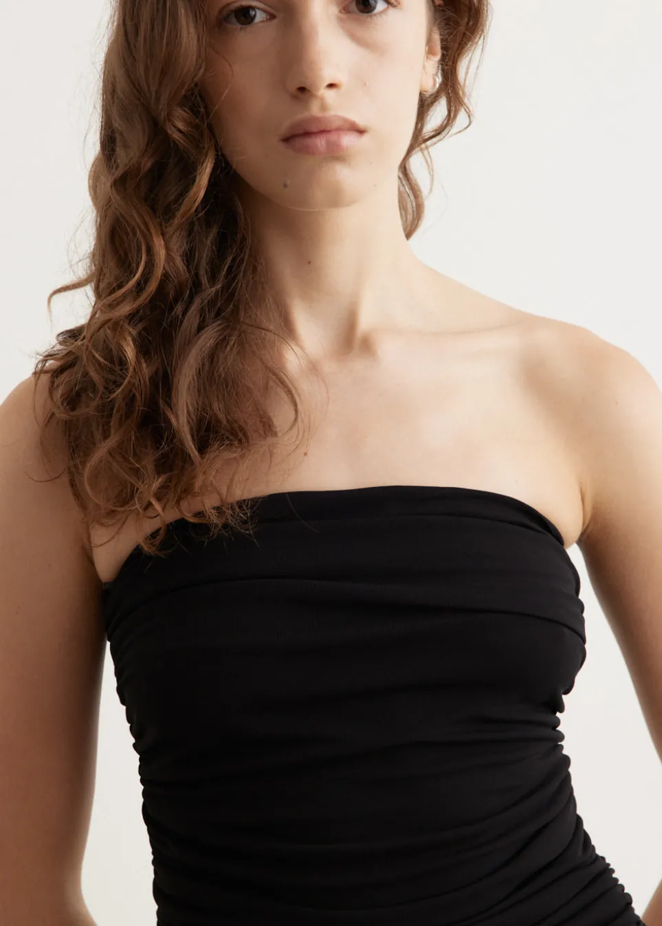 ESSE Studios is an Australian brand with the philosophy of slowly curating your wardrobe from one release to the next. Their pieces are versatile and made with longevity in mind. Crafted from a slinky jersey knit, the Bonachi Strapless Top is a form-fitting bodycon top with gathered accents throughout.