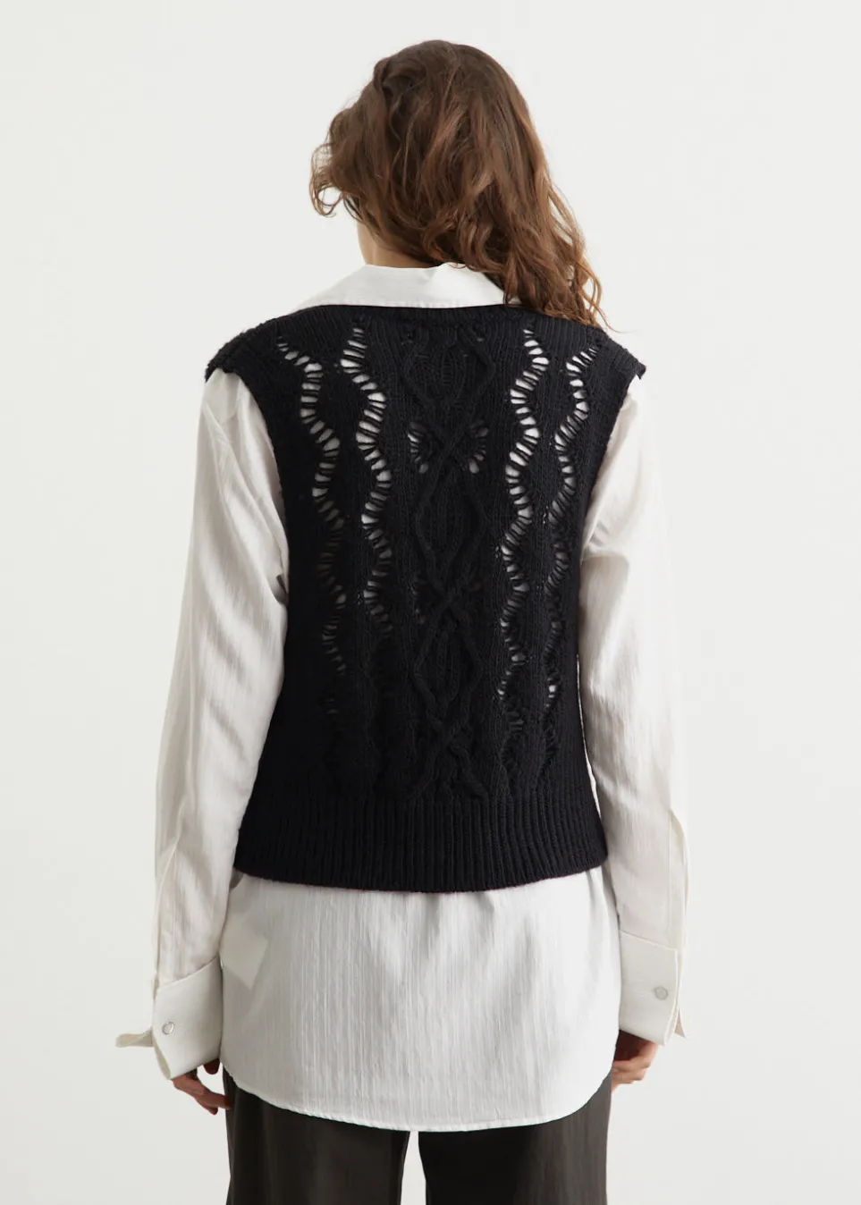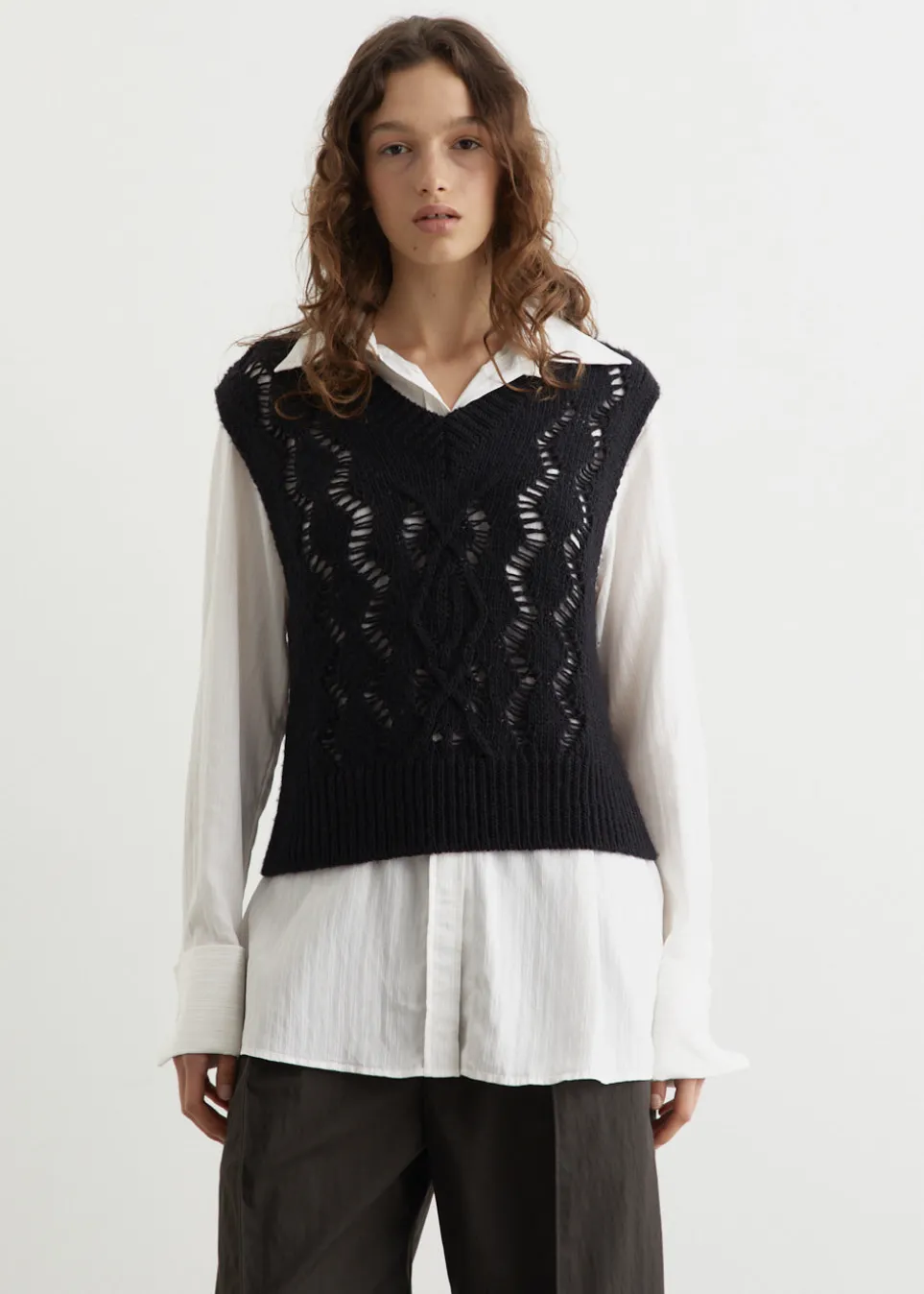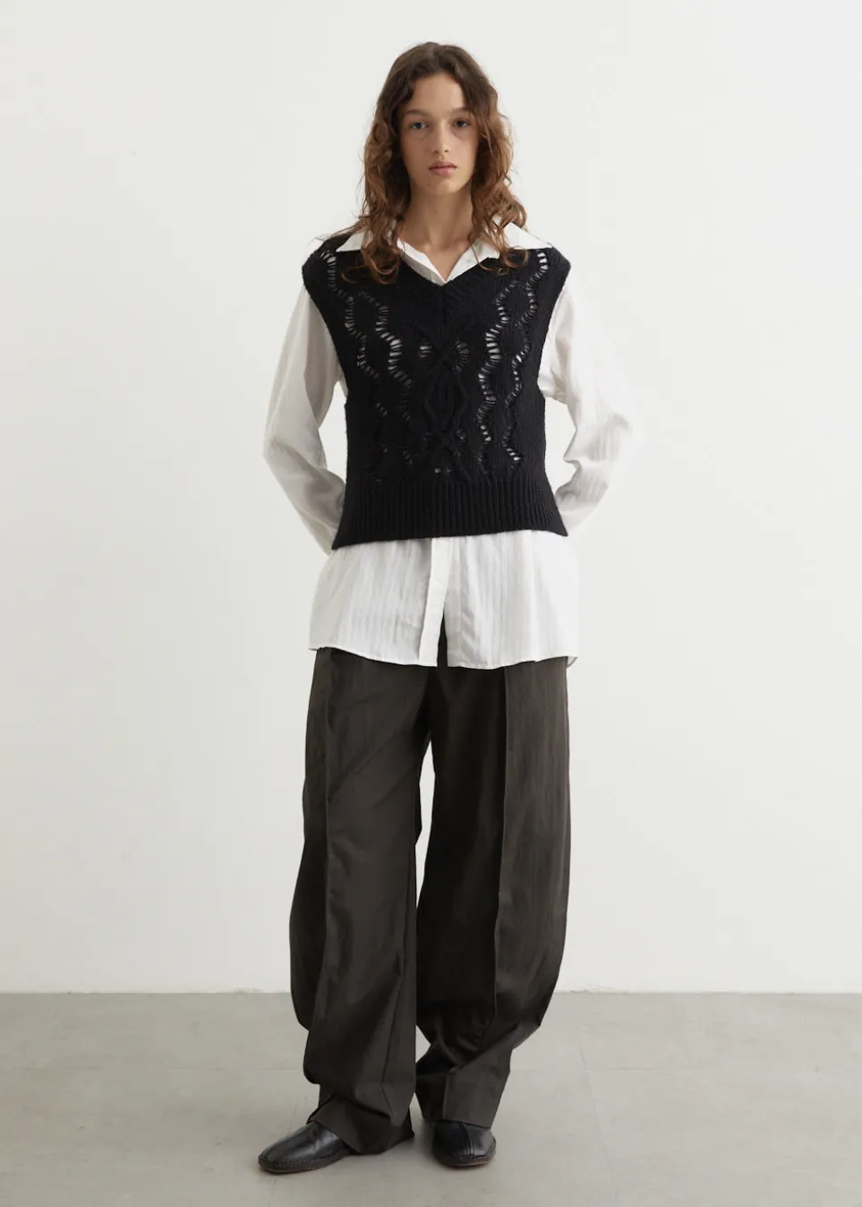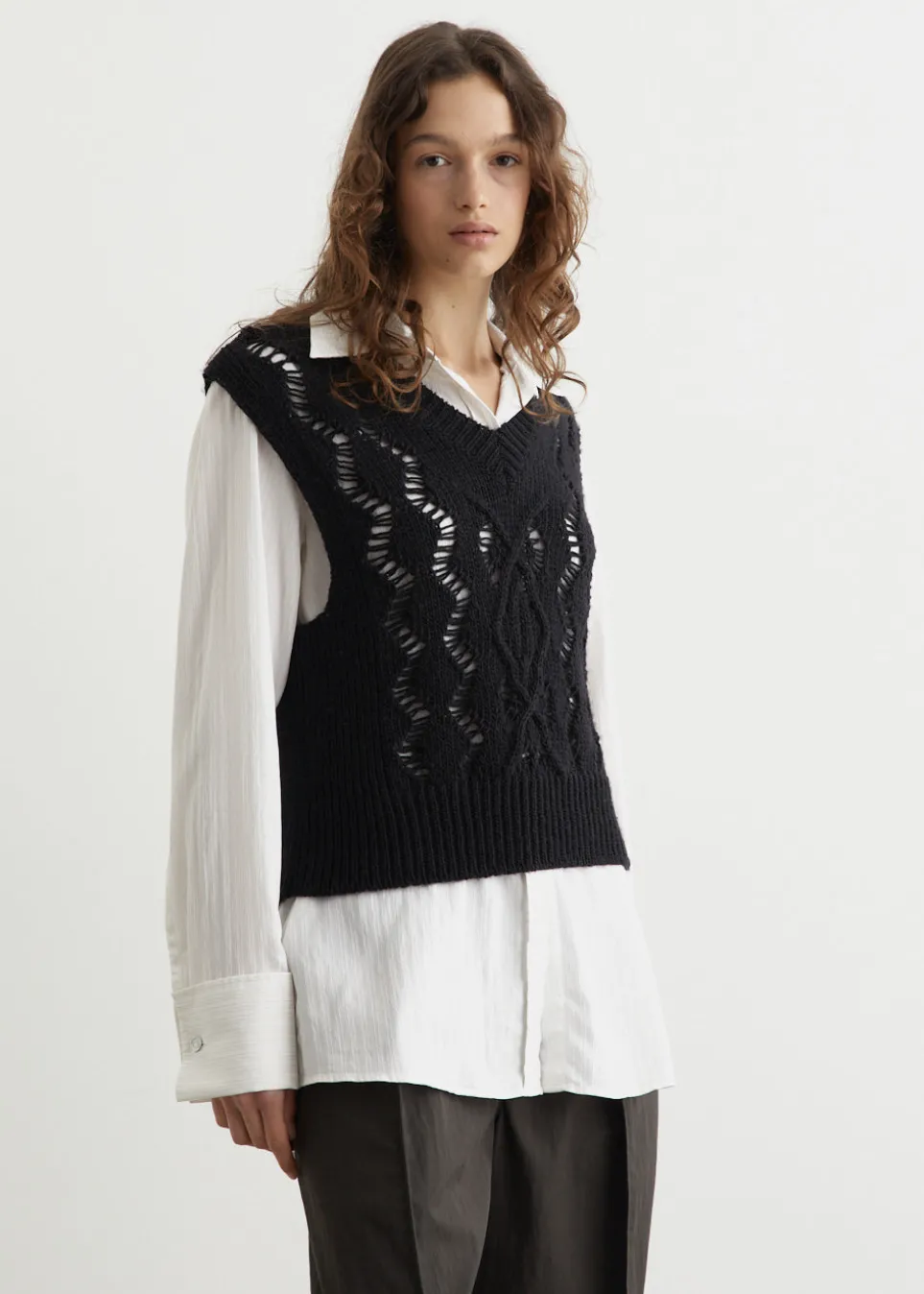 Based in Stockholm, Sweden, Our Legacy has quietly amassed a cult of dedicated followers by blurring the lines between gender, streetwear and classic tailoring. Crafted from carefully sourced Italian lana wool yarn, the Cable Michigan Tank Top is adorned with an open cable knit pattern and is knitted to a v-neck collar with a regular, cropped fit.