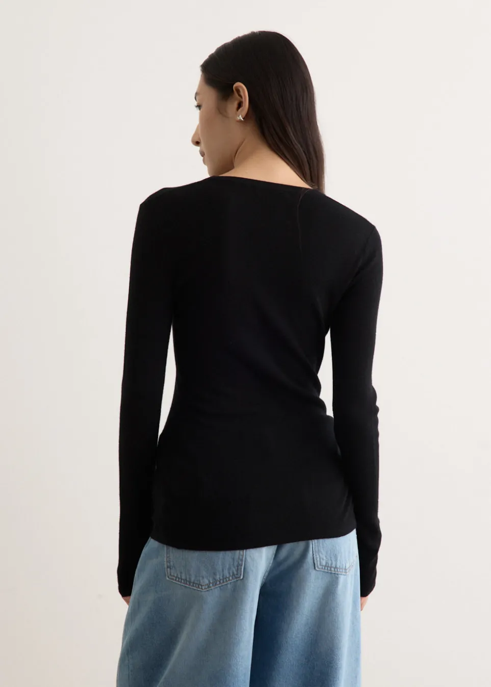 Renowned for its considered footwear, A.EMERY has expanded into ready-to-wear, offering timeless, versatile pieces. Founded in Melbourne with a focus on refined minimalism and premium materials, the brand embodies understated elegance season after season. Made from ultra-soft and lightweight merino wool, the Charlie Top is the perfect layering piece for the colder seasons.