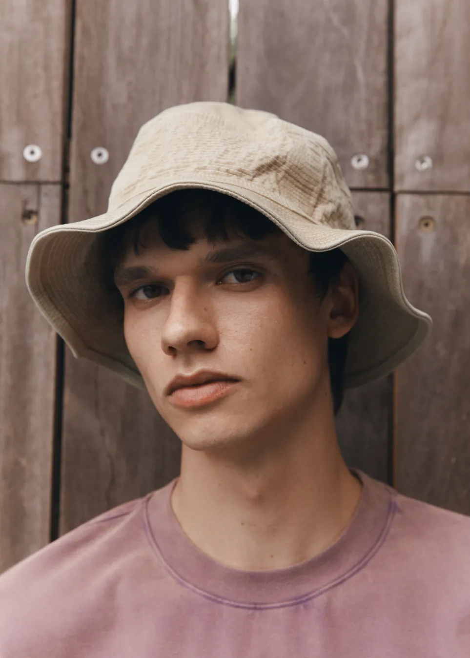 Paying homage to its hometown Kojima, Okayama – an area dubbed Japan’s denim capital – Kapital creates workwear-inspired pieces with a distinct edge. Lookout for raffish printed shirts and signature accessories in the label’s latest drop. The Chino Bucket Hat is handmade, so each one may look a bit different from the photo. It features reinforced stitching along the brim and over half of the crown, adding strength and style.