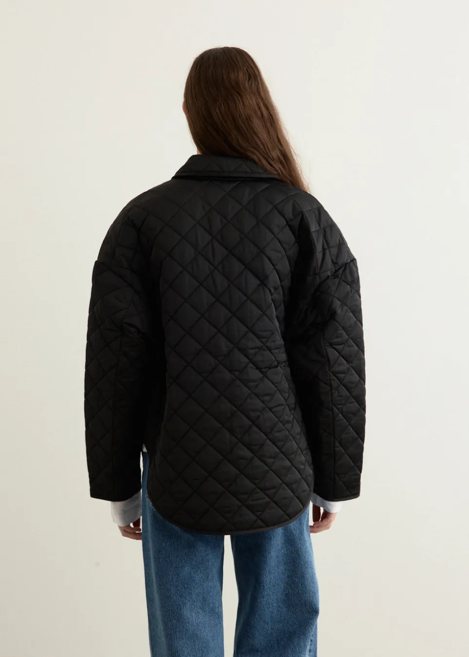 Founded in 2014 by Elin Kling and Karl Lindman, Toteme is a Stockholm-based brand renowned for crafting elevated essentials and timeless wardrobe foundations. An updated version of the brand’s classic jacket, the Collared Quilted Jacket oversized fit jacket delivers a contemporary approach to outerwear. Cut from a quilted, water-resistant, recycled polyester and shaped into an oversized silhouette. Featuring a collared neckline, snap button closures, dropped shoulder seams and a split curved hemline.