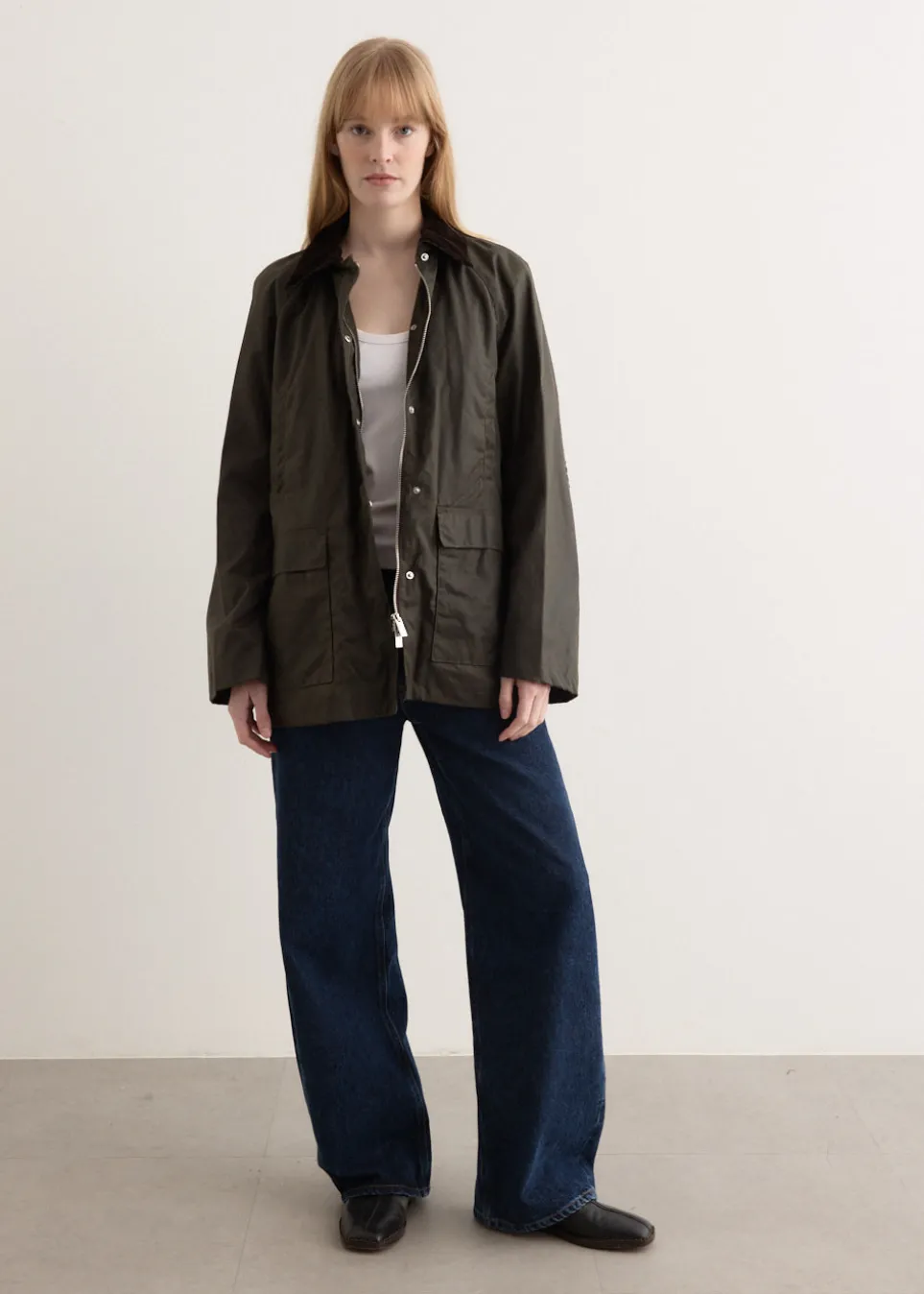 Founded in 2014 by Elin Kling and Karl Lindman, Toteme is a Stockholm-based brand renowned for crafting elevated essentials and timeless wardrobe foundations. Made from insulated, wax-coated organic cotton duck canvas, the Country Jacket features a contrasting corduroy collar and elbow patches. Designed with a concealed two-way zipper, snap-button front, and practical welt and flap pockets.