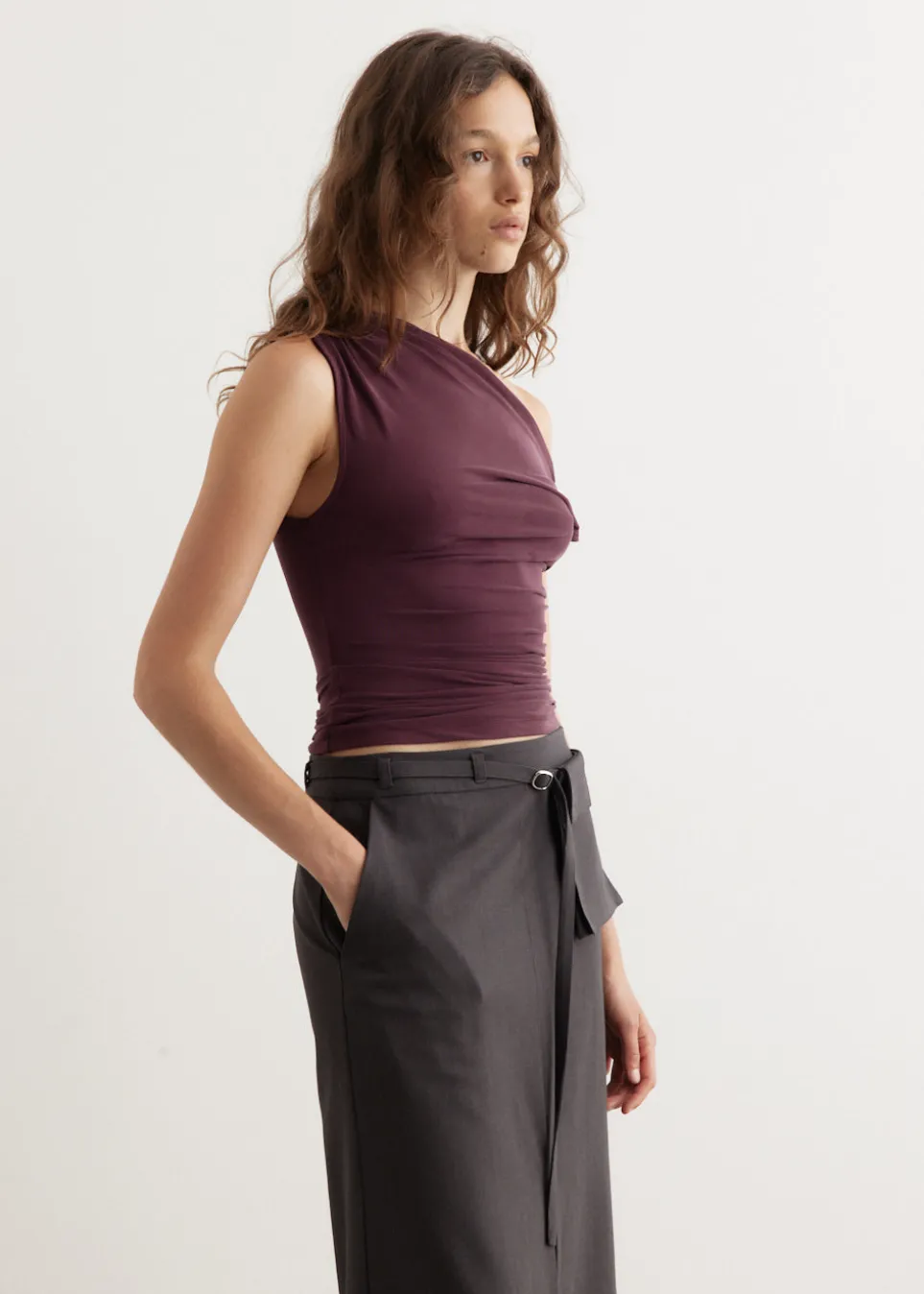 Incu Collection blends masculine and feminine styles creatively, offering refined tailored silhouettes and curated detailing for a unique and functional fashion statement. Crafted from a soft and stretchy modal blend, the Crossroads Off Shoulder Top showcases an asymmetric off-shoulder silhouette, detailed with ruching at the top for a effortless draped look.