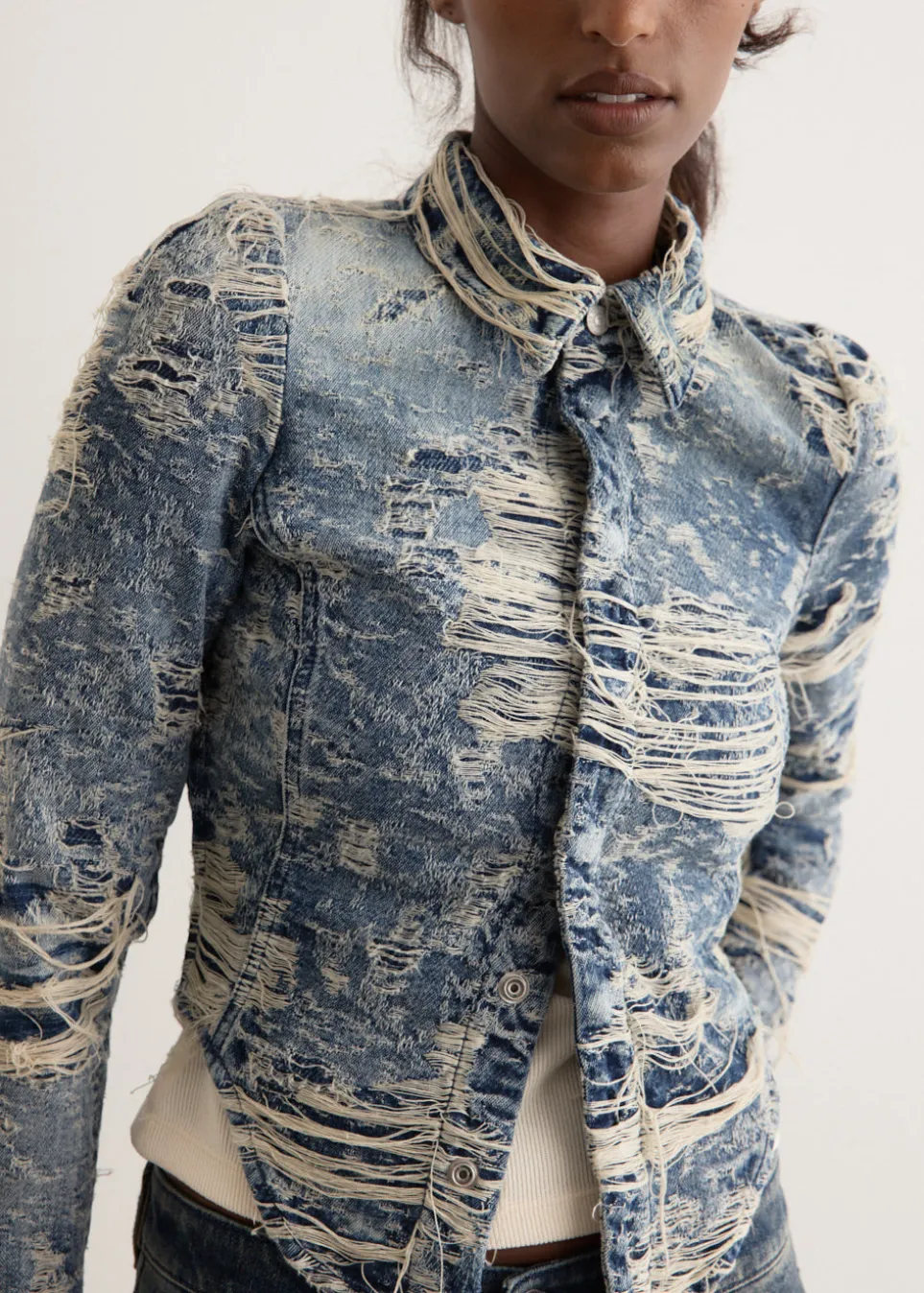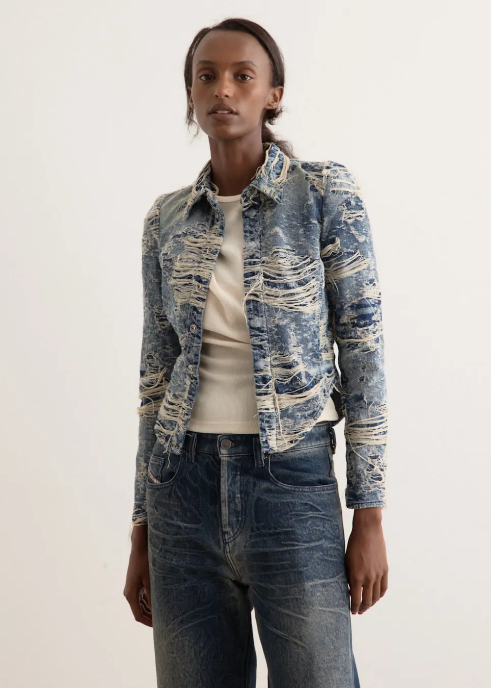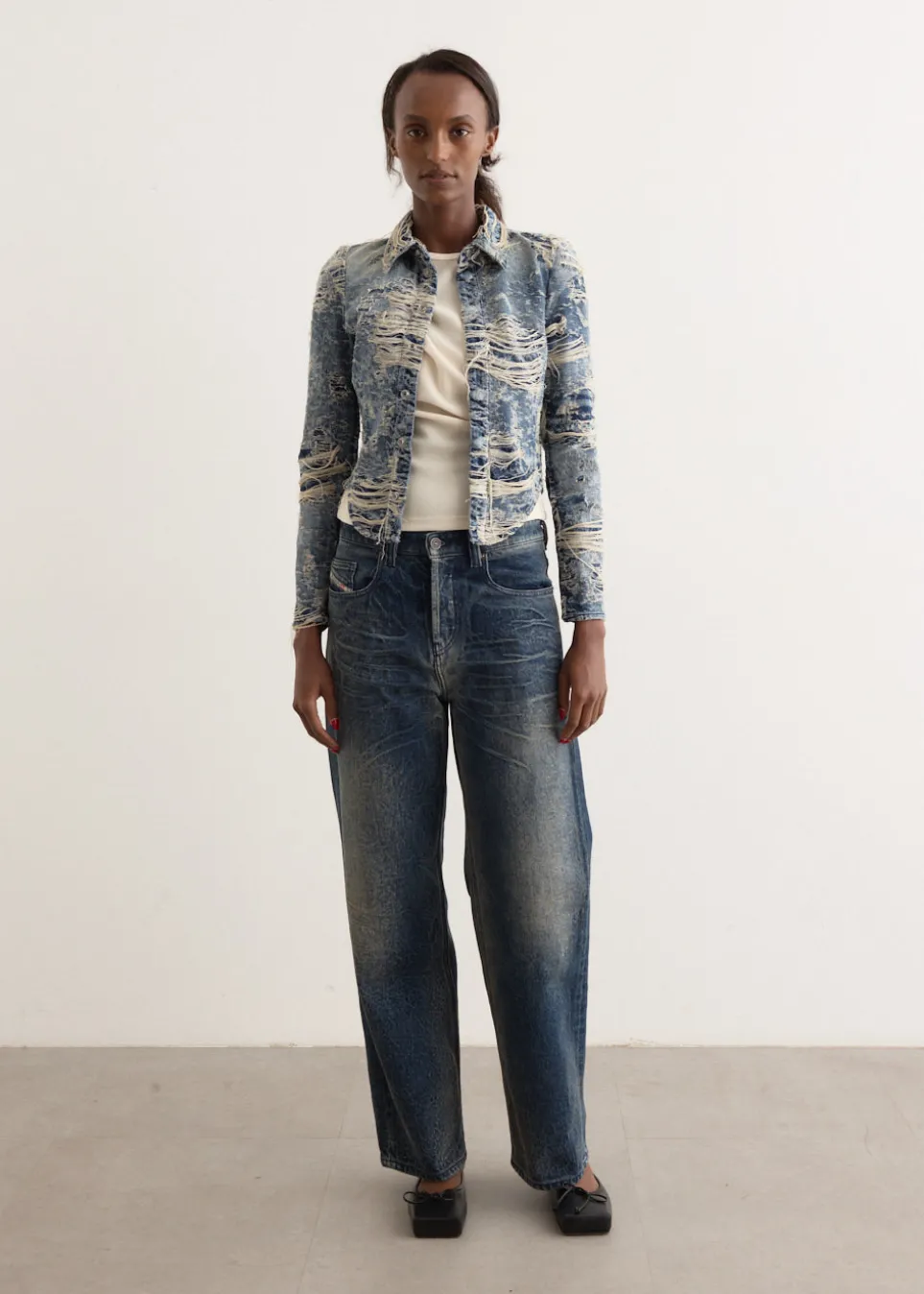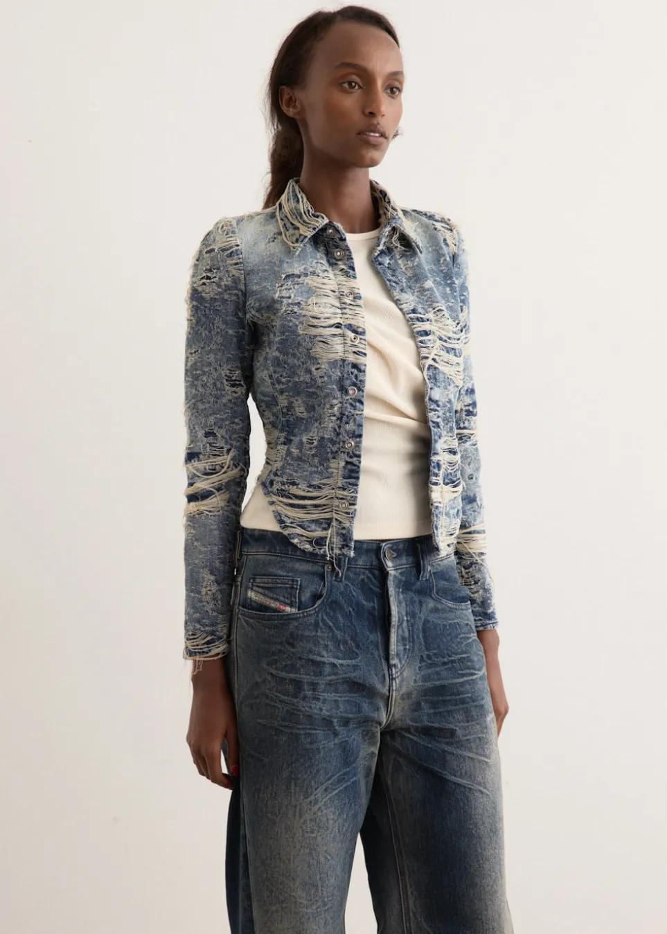 Founded in 1978, Diesel is rooted in denim mastery, known for their nostalgic Y2K-inspired pieces to create a chic yet casual look. Their collections sport denim-heavy designs in their rebellious yet playful collections. The De-Madeline-Fsg Shirt is designed to be worn both as a shirt and a jacket. Crafted from stonewashed denim that has been lasered to create random floating threads for a signature Diesel aesthetic.