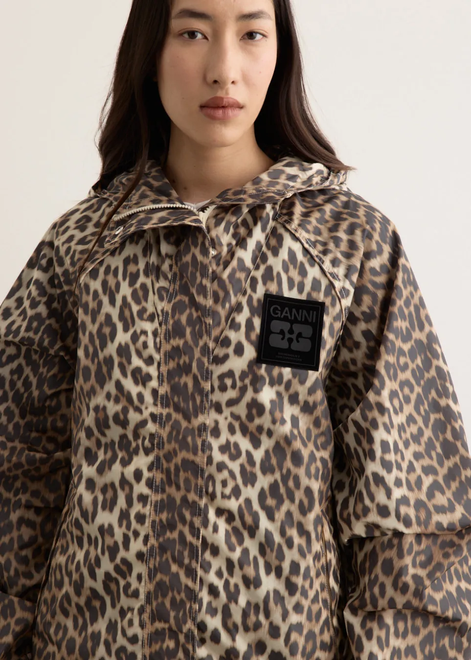 Danish label Ganni blends streetwear trends with a playful touch of humour through bold prints and colour palettes, voluminous silhouettes and easy-to-wear fabrics. Cut to an oversized fit, the Flyweight Nylon Jacket features a hooded neckline and a hidden front zip and snap-button down closure. Detailed with a GANNI Butterfly logo patch on the chest for a branded accent.