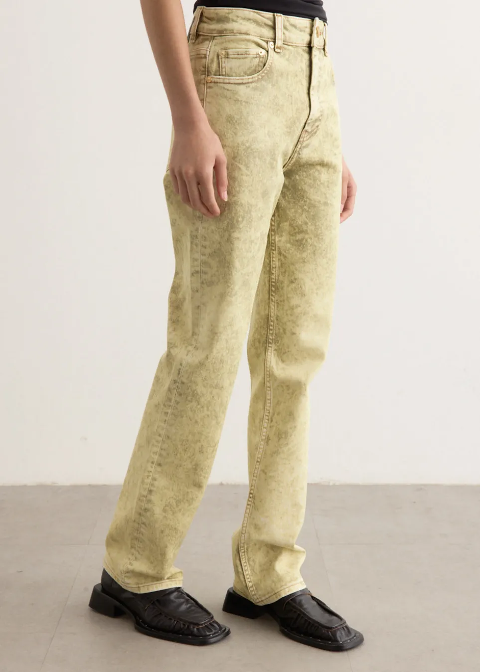Danish label Ganni blends streetwear trends with a playful touch of humour through bold prints and colour palettes, voluminous silhouettes and easy-to-wear fabrics. Crafted from an organic cotton blend denim, the Foil Overdyed Denim Jeans boasts a bell-bottom leg and a five-pocket design. The back pocket features a sewn-on GANNI logo patch, completing the look.