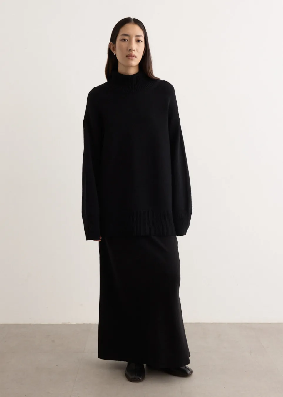 Renowned for its considered footwear, A.EMERY has expanded into ready-to-wear, offering timeless, versatile pieces. Founded in Melbourne with a focus on refined minimalism and premium materials, the brand embodies understated elegance season after season. Knitted from a luxurious merino wool blend, the Gibson Funnel Knit is perfect to throw on during the colder months. Boasting a timeless style, it features a ribbed turtleneck, cuffs and hem and is cut to an oversized fit for an effortless look.