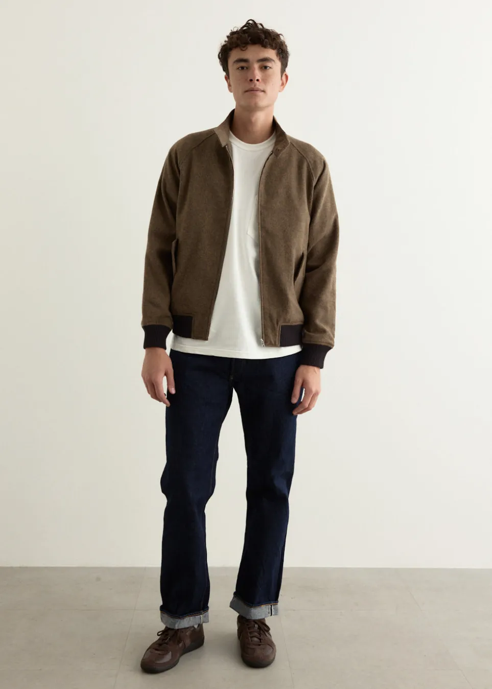 Born out of New York City in 2009, Saturdays NYC combines surf and city aesthetics, with a wide array of garments from graphic t-shirts to hoodies to tailoring. Influenced by nature and travel, their designs are understated and easy-to-wear. Crafted from textured cotton herringbone, the Harrington Tweed Jacket offers a timeless silhouette with a buttoned stand collar, front zip closure, raglan sleeves, finished with flap pockets and contrast elasticated cuffs and hem.