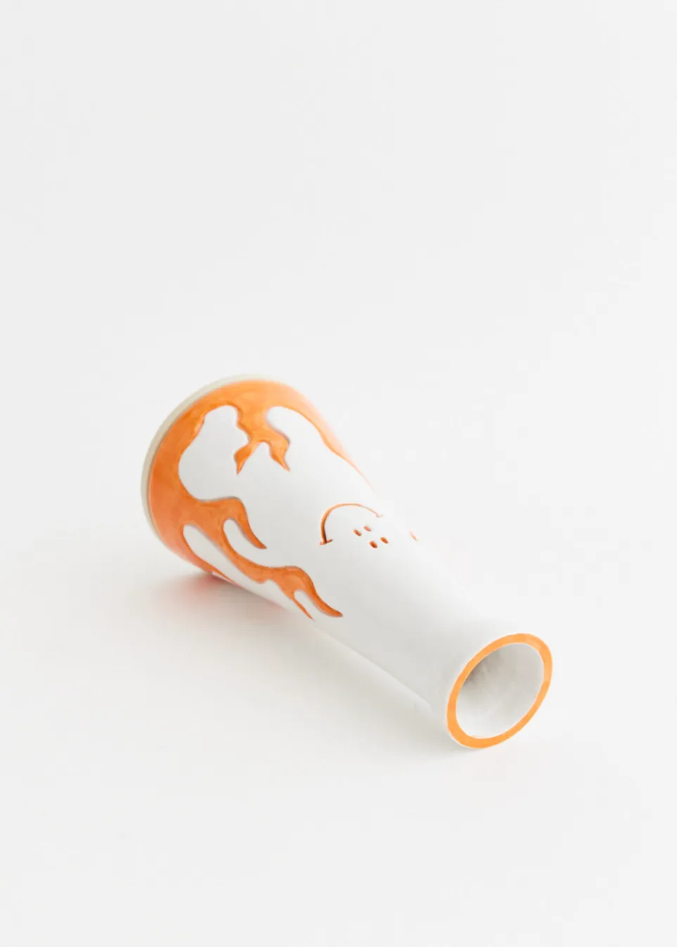 Founded in 2021 in Meanjin, Australia, Sun Children is a creative outlet by Simon and Kimberley Sun, bringing fashion-inspired elements to ceramics. Each handcrafted piece — sculpted, illustrated, and glazed in Brisbane — reflects the joy and connection of family. Crafted with stoneware ceramic and finished with underglaze and clear gloss glaze, the Hot Pants Vase boasts a unique base adorned with custom artwork depicting flames.