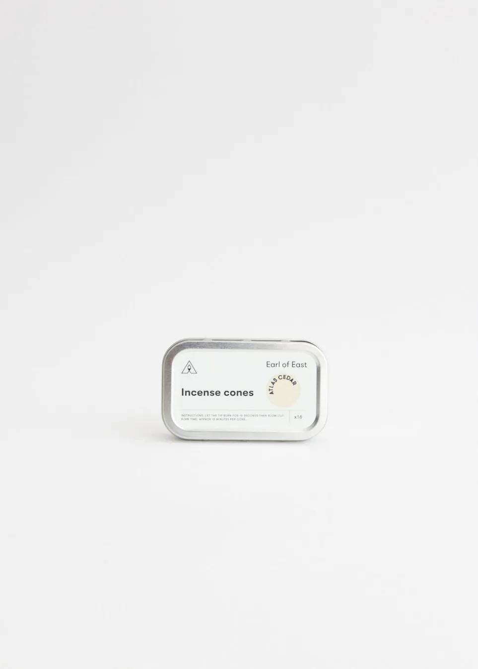 Founded in 2014 by Niko Dafkos and Paul Firmin in London, Earl of East have four pillars which form their approach to operating – Create, Curate, Collaborate and Community. The IIncense Cones Atlas Cedar come in a tin box which can be added to any environment which deserves a fragrance pick-me-up.
