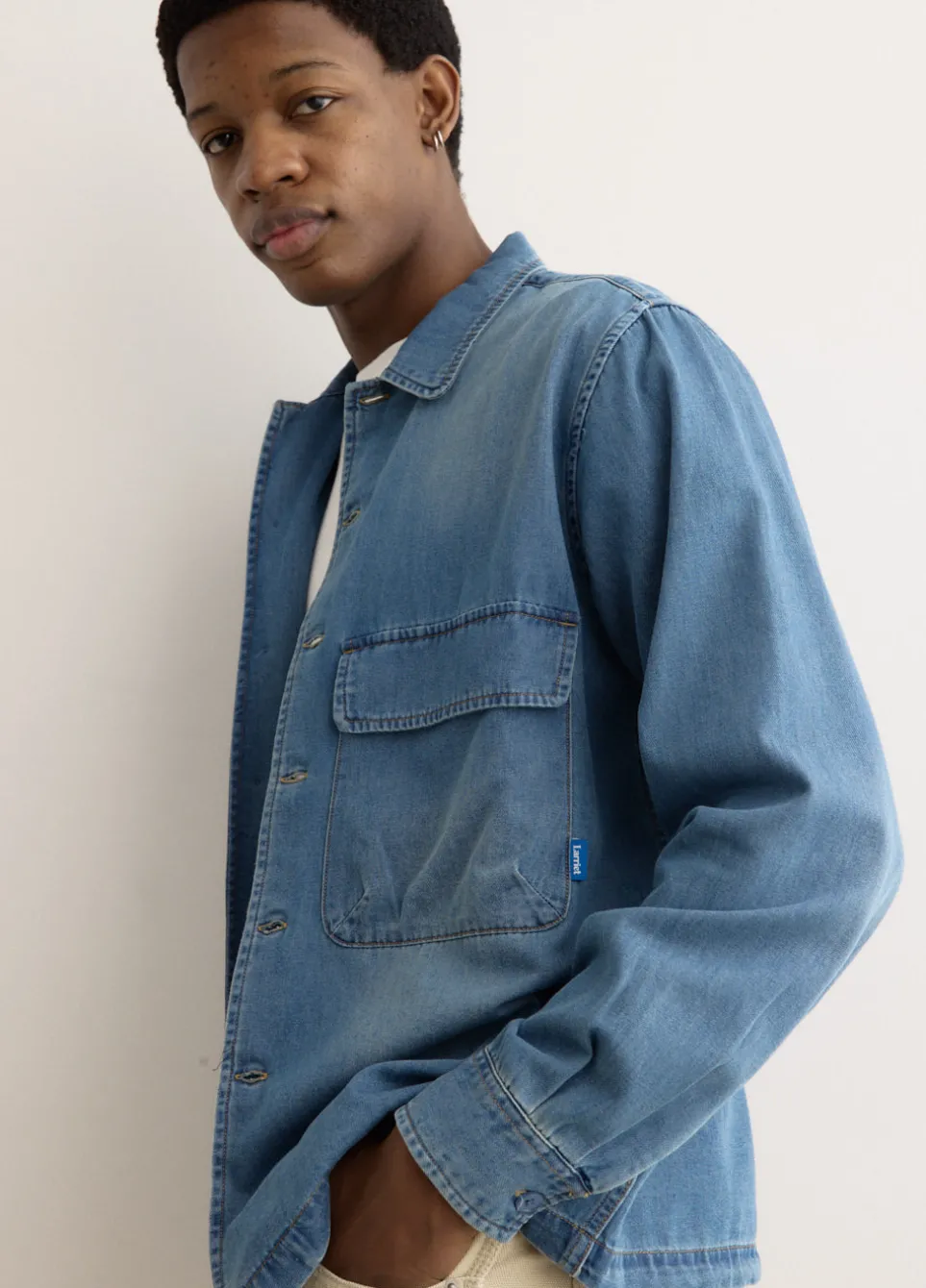 Melbourne-based label Larriet takes its name from the word ‘lasso’, an act of unifying elements with purpose. It represents the brand’s commitment to blending timeless silhouettes with practicality. Made from lightweight cotton denim, the Kendalls Long Sleeve Shirt is cut to a relaxed, boxy fit. Featuring an unstructured flat collar, large patch pockets with flaps and finished with a woven logo label on the left pocket for a subtle branded accent.