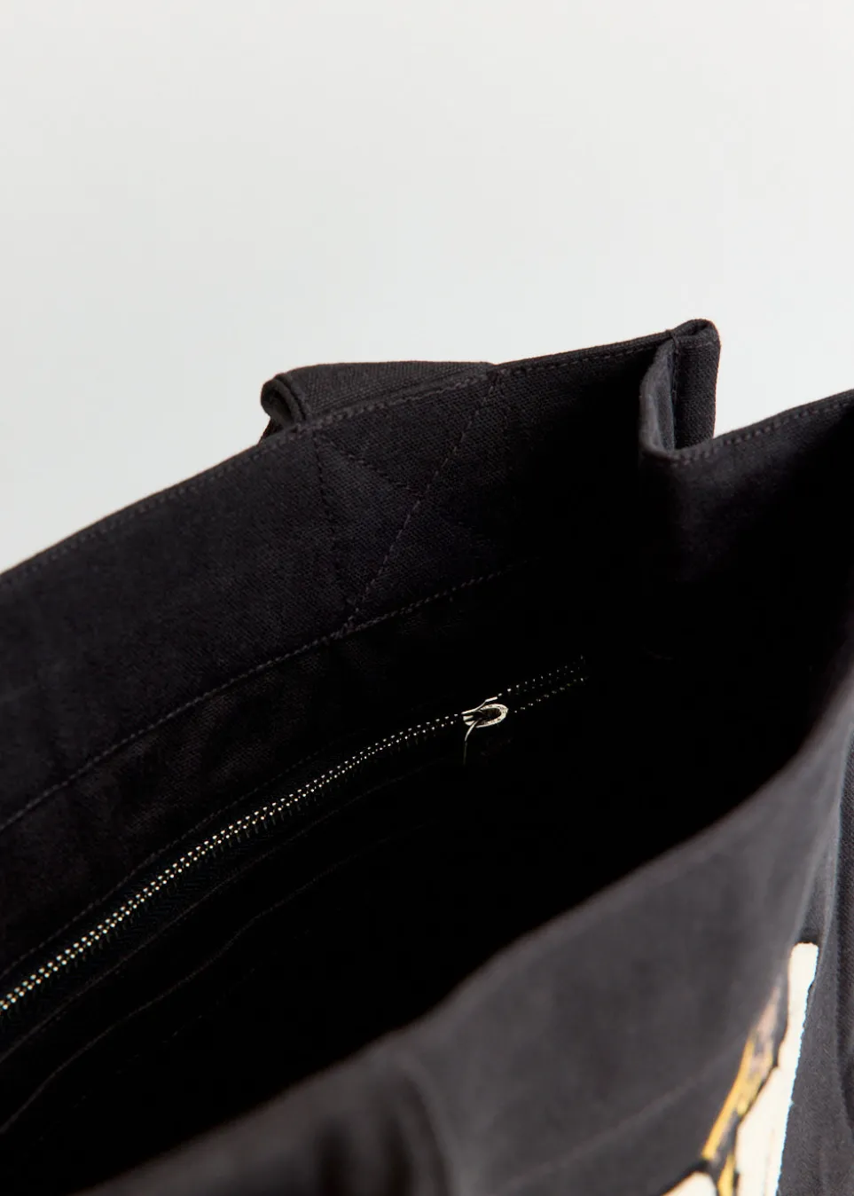 Danish label Ganni blends streetwear trends with a playful touch of humour through bold prints and colour palettes, voluminous silhouettes and easy-to-wear fabrics. Made from recycled cotton, the Large Easy Shopper boasts a rectangular shape complete with two handles and a seasonal graphic GANNI logo embroidered on the front.