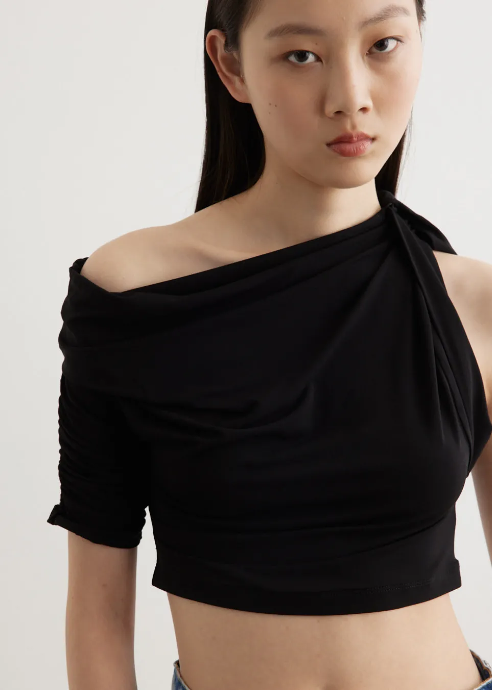 – Knotted detail at neckline on left shoulder