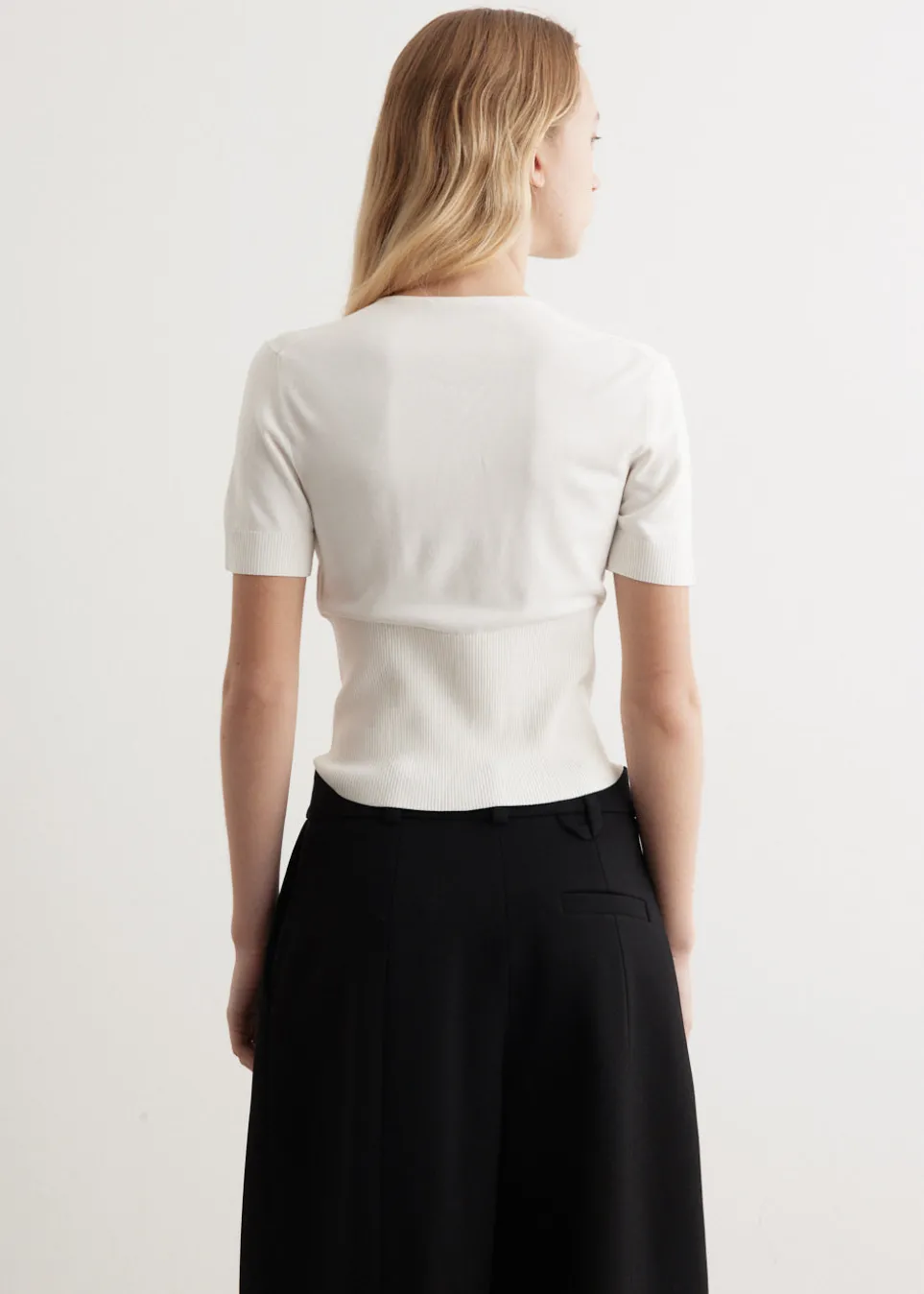 Vivacious and modernist French fashion-house, Jacquemus, can be described as a phenomenon. The brand’s accessories and ready-to-wear collections are consistently awe-inducing season after season. The Le Haut Pralu Top is tailored to slim fit with long sleeves. Featuring a scalloped neckline, with gold metal charm logo with a keyhole neckline.