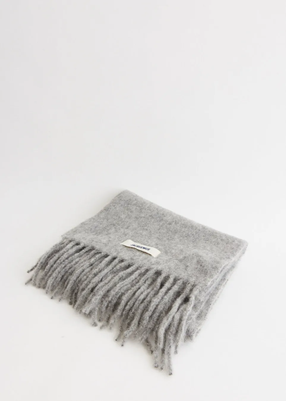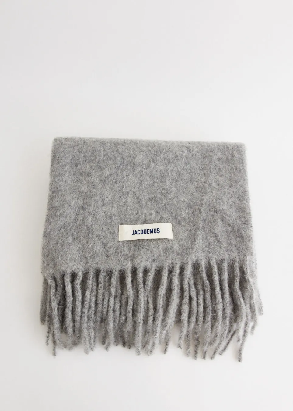 Vivacious and modernist French fashion house, Jacquemus, can be described as a phenomenon. The brand’s accessories and ready-to-wear collections are consistently awe-inducing season after season. Crafted from a mohair blend, the L’Echarpe Carro is a timeless scarf featuring signature branding and fringed trims.