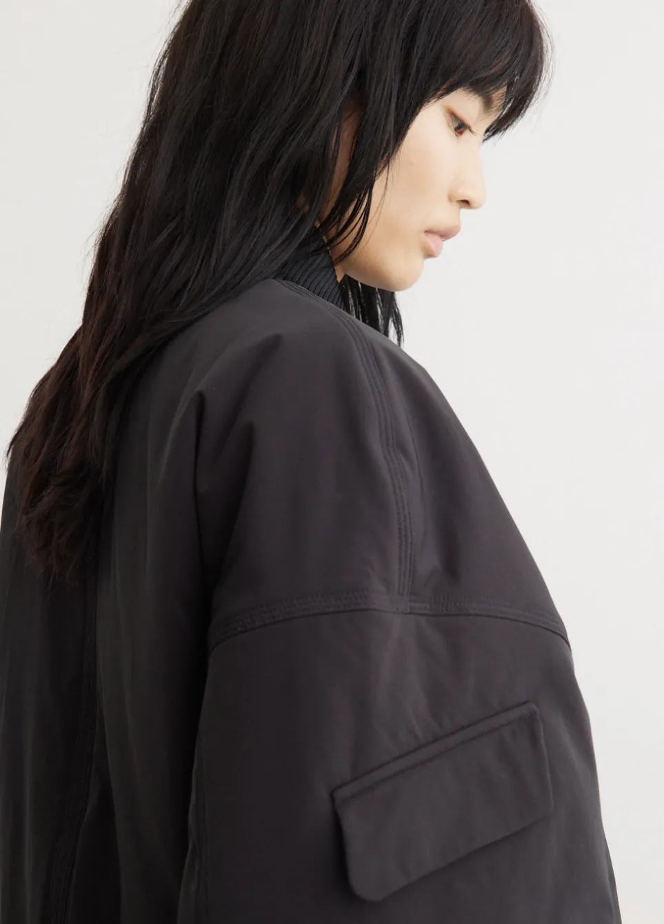 Danish label Ganni blends streetwear trends with a playful touch of humour through bold prints and colour palettes, voluminous silhouettes and easy-to-wear fabrics. The Heavy Twill Short Jacket boasts a cropped length and a boxy, relaxed fit. It features a zip closure and a chest welt pocket for added style and functionality.