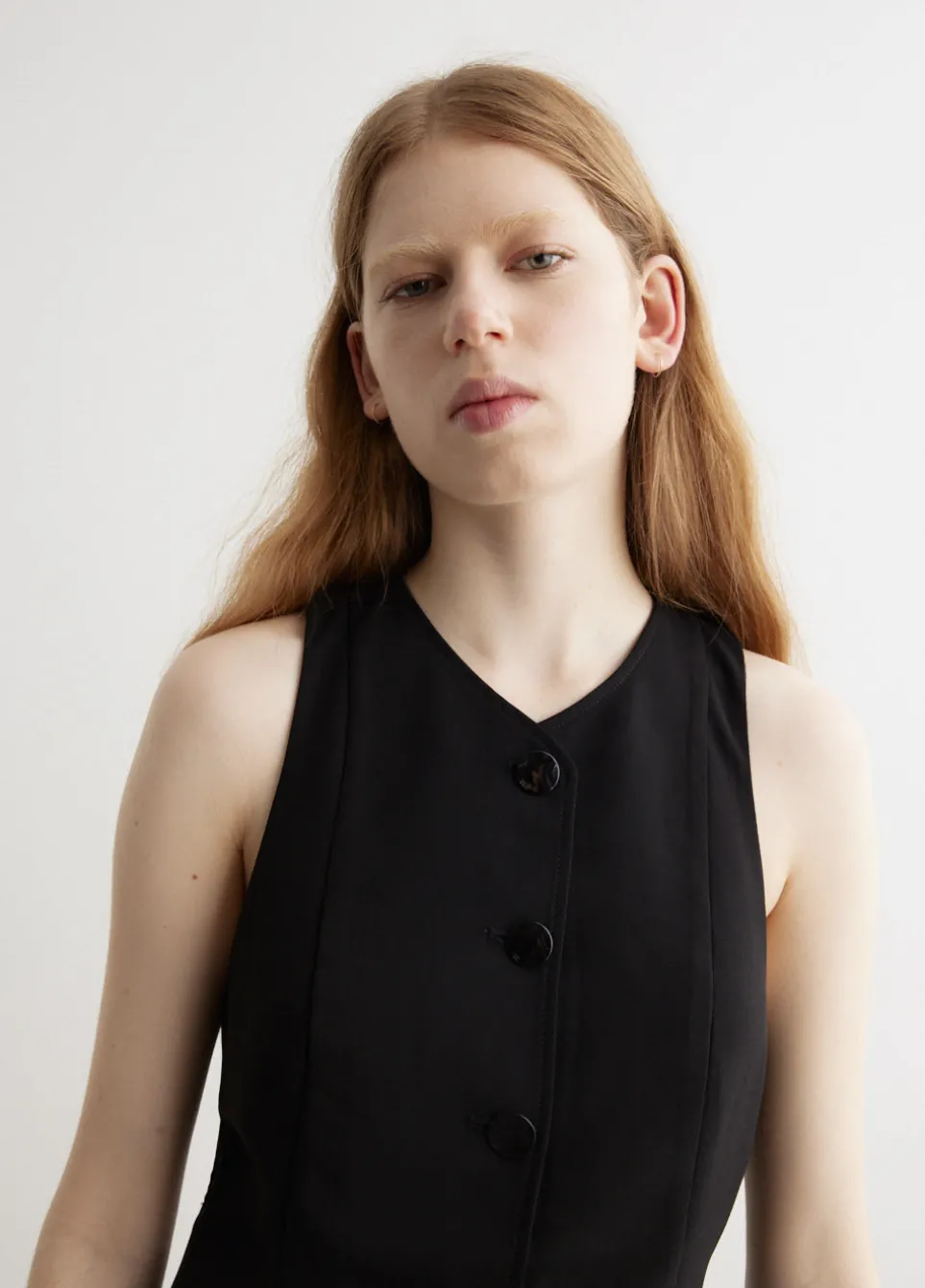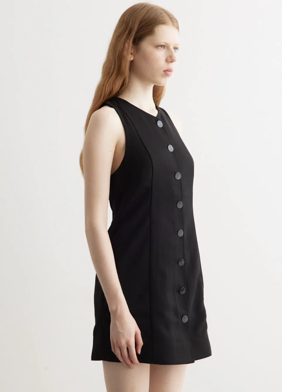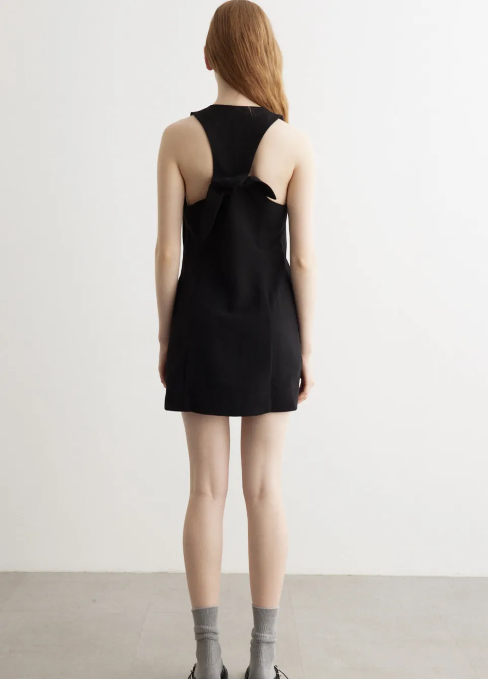 Danish label Ganni blends streetwear trends with a playful touch of humour through bold prints and colour palettes, voluminous silhouettes and easy-to-wear fabrics. Made from a recycled polyester blend, the Light Twill Suiting Mini Dress features a tailored fit and a sleek silhouette, making it a versatile choice for both formal and casual occasions.