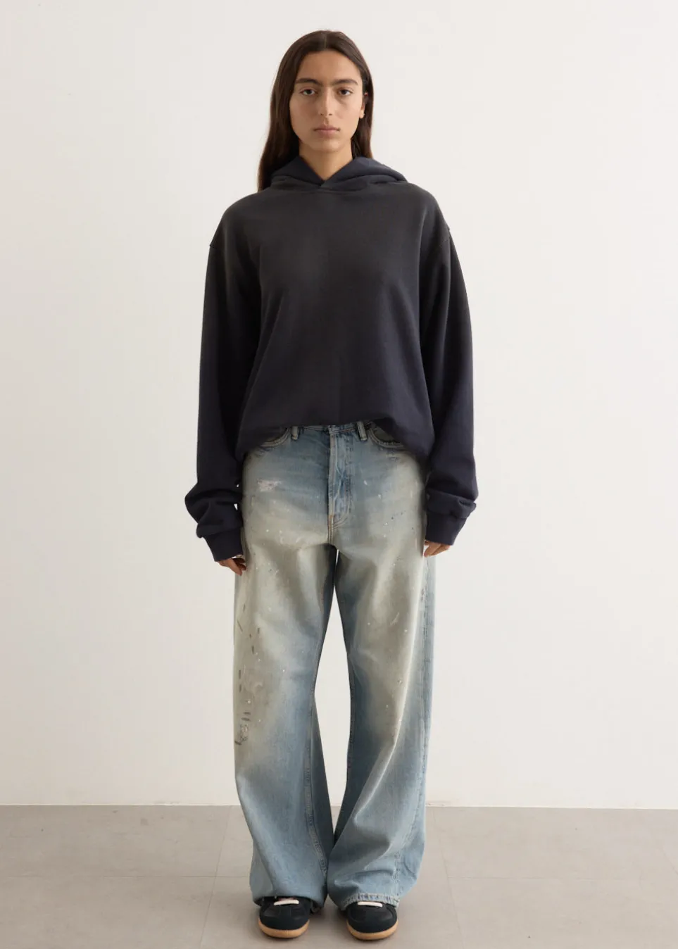 Defined by its experimental take on Scandinavian minimalism, Acne Studios blends technical design with an unexpected palette and androgynous style cues. Crafted from an organic cotton blend fleece with a vintage-sprayed effect, the Logo Hooded Sweater features a printed Acne Studios logo on the back and is complete with distressed details at the cuffs and hem.