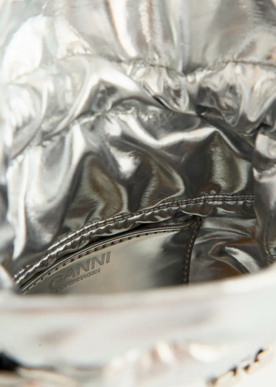 Danish label Ganni blends streetwear trends with a playful touch of humour through bold prints and colour palettes, voluminous silhouettes and easy-to-wear fabrics. Made from a metallic and reflective recycled leather blend, the Mini Bou Bucket Bag features a drawstring closure and a braided top handle with a knotted detail. It’s complete with a GANNI Butterfly hardware logo and embossed logo.