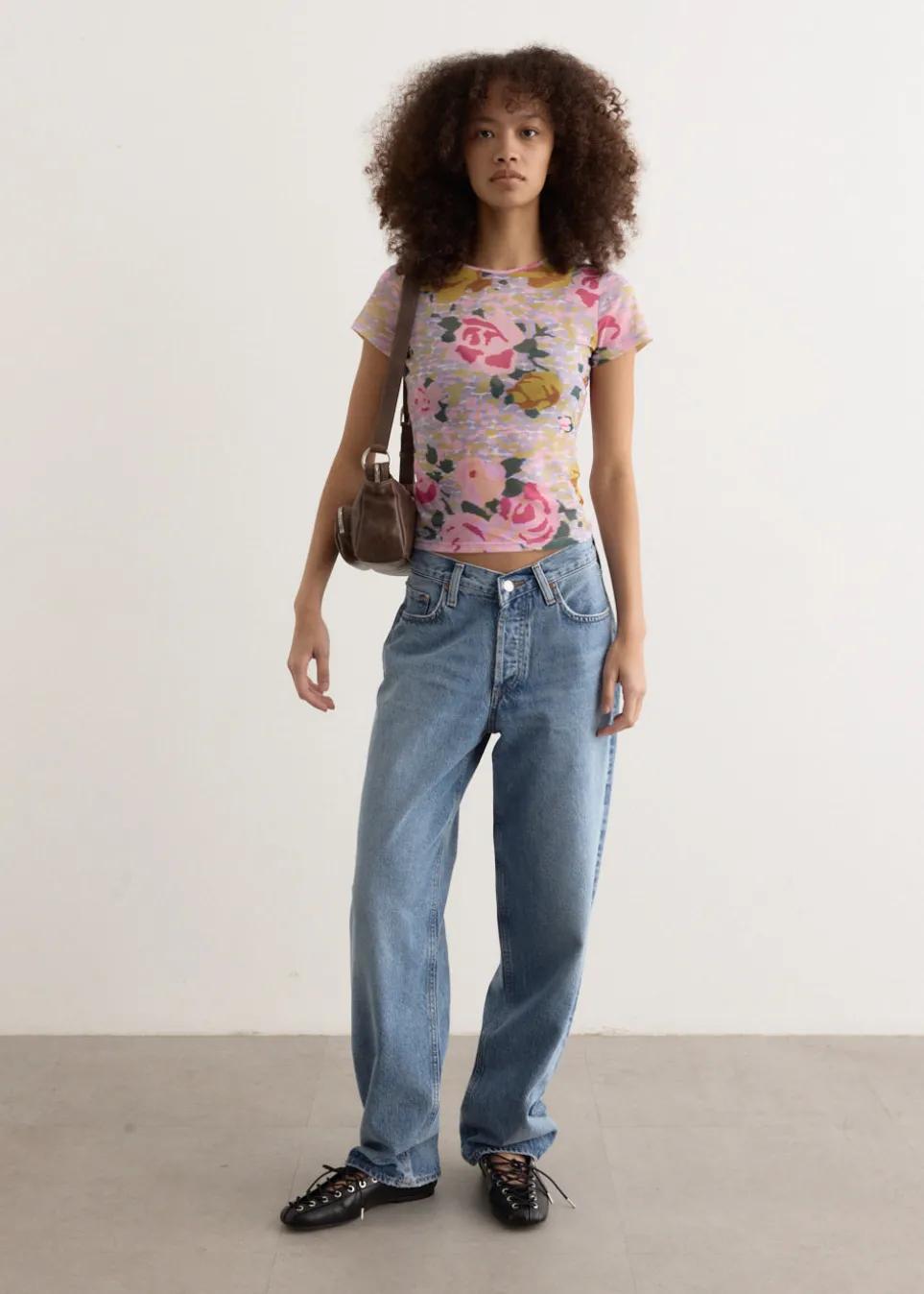 MIAOU was born where French-girl style meets Southern California-cool. The label takes vintage silhouettes and turns them into elevated, contemporary garments which echo supermodel style from the ’90s. Crafted from recycled polyester blend, the Mini T-Shirt features a floral print throughout.