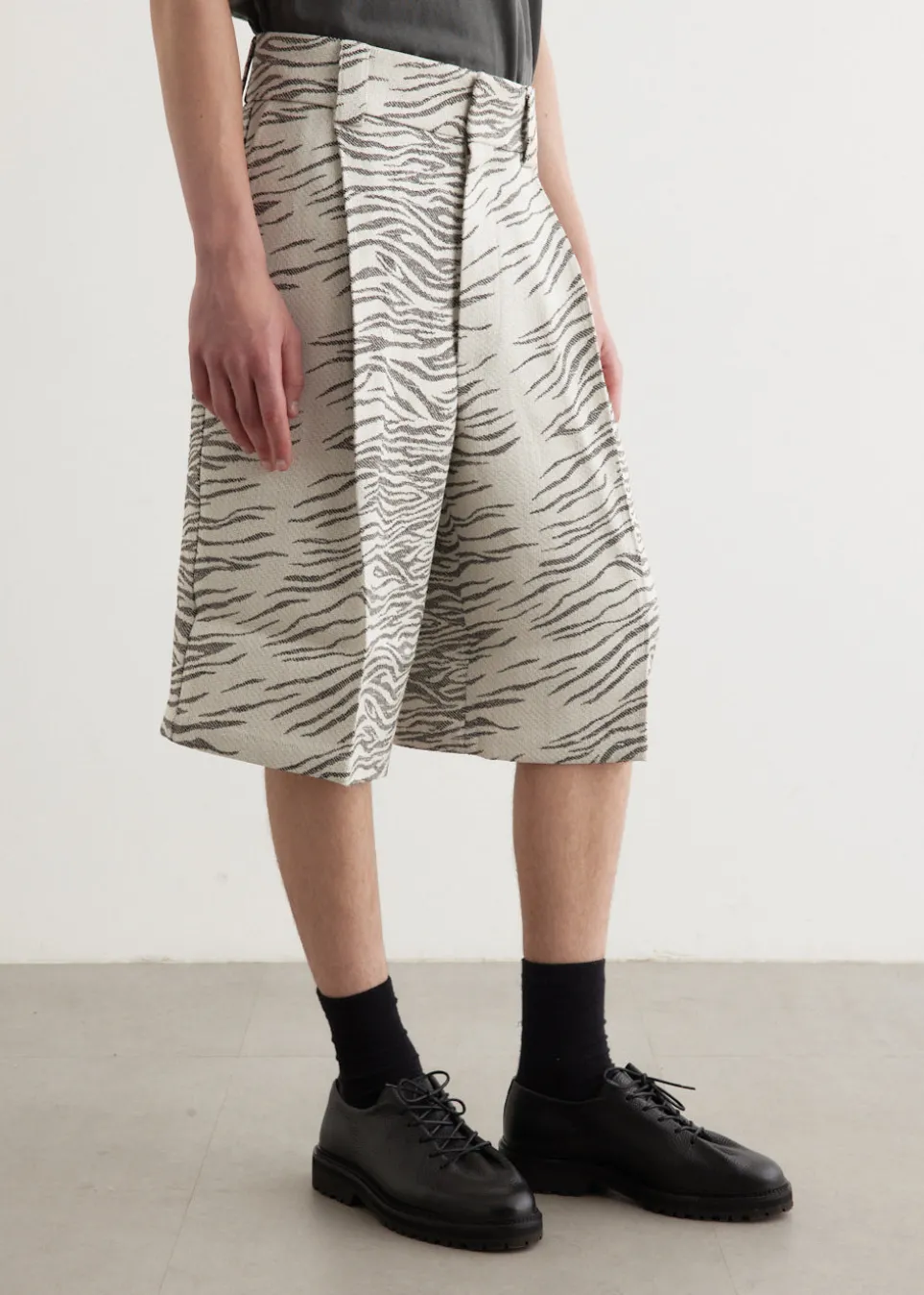 Vivacious and modernist French fashion-house, Jacquemus, can be described as a phenomenon. The brand’s accessories and ready-to-wear collections are consistently awe-inducing season after season. Meticulously crafted from a viscose, silk and cotton blend, the Navega Shorts boasts an all-over zebra patterned jacquard and is tailored to a straight, loose fit. Featuring a wide waistband with belt loops, hook closure and pleats on the legs.