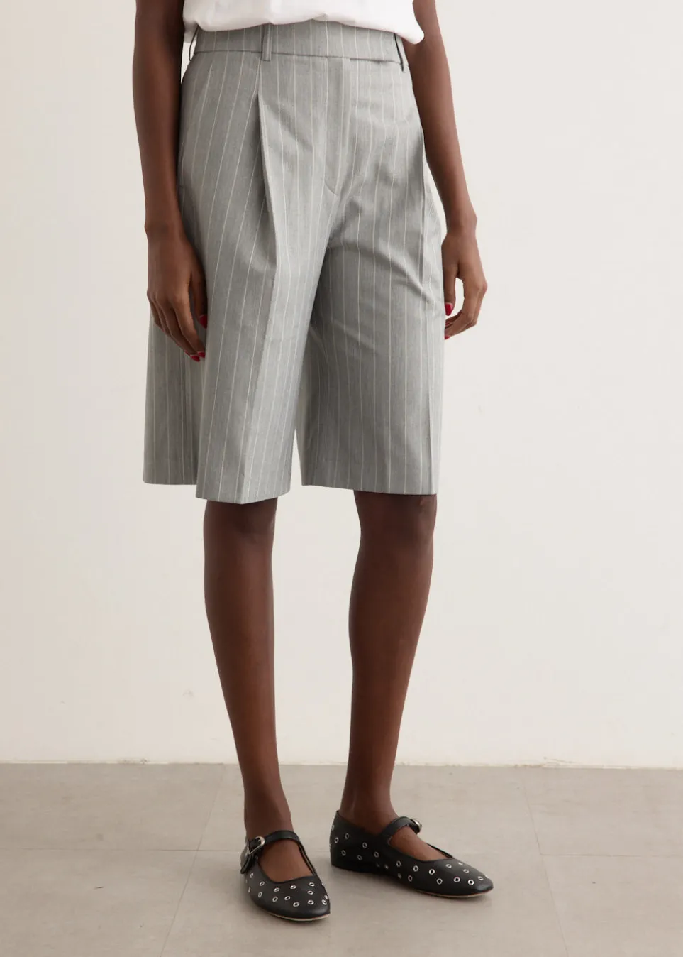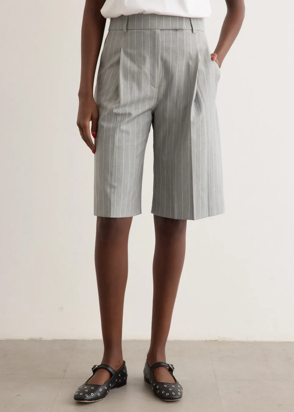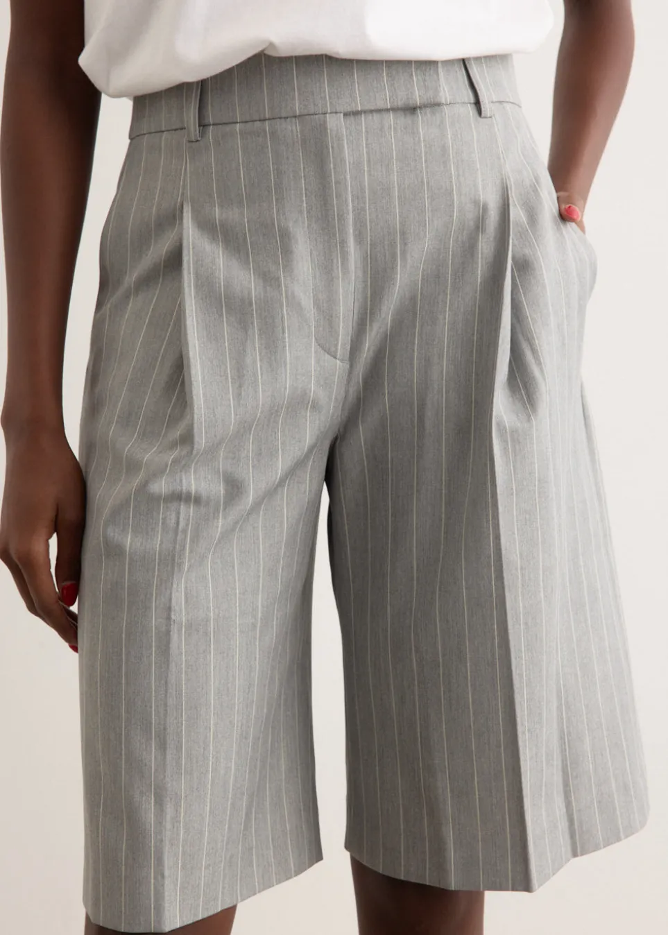 Brainchild of the designer duo Rikke Baumgarten and Helle Hestehave, Baum und Pferdgarten is the Danish label that blends modern feminine style with a playful sensibility. The Nico Shorts are a polished take on the classic Bermuda style. Designed with a high waist and straight-leg fit, they offer a flattering, refined look. A pinstripe pattern adds sophistication.