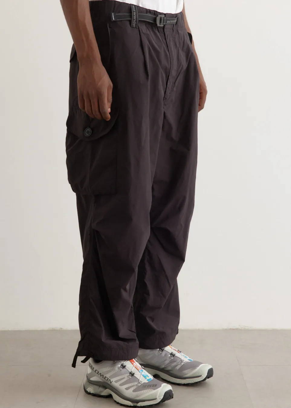 Created in 2011 And Wander was started by two former designers from Issey Miyake, Keita Ikeuchi and Mihoko Mori. Inspired by the great outdoors and adopted for city life, they are one of the defining brands responsible for bringing a unique sensibility of high-fashion into products which have the functionality and practicality to be worn in the mountains. Crafted from a water-repellent polyester blend, the Oversized Cargo Pants are tailored to a loose, wide leg silhouette. Adorned with the brands signature integrated webbing belt, and carabiner clip.