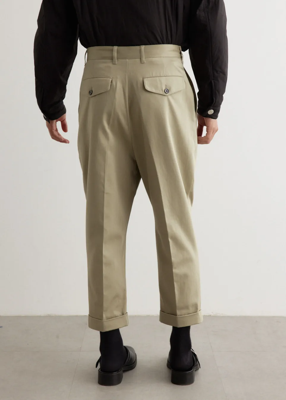 – Back buttoned pockets