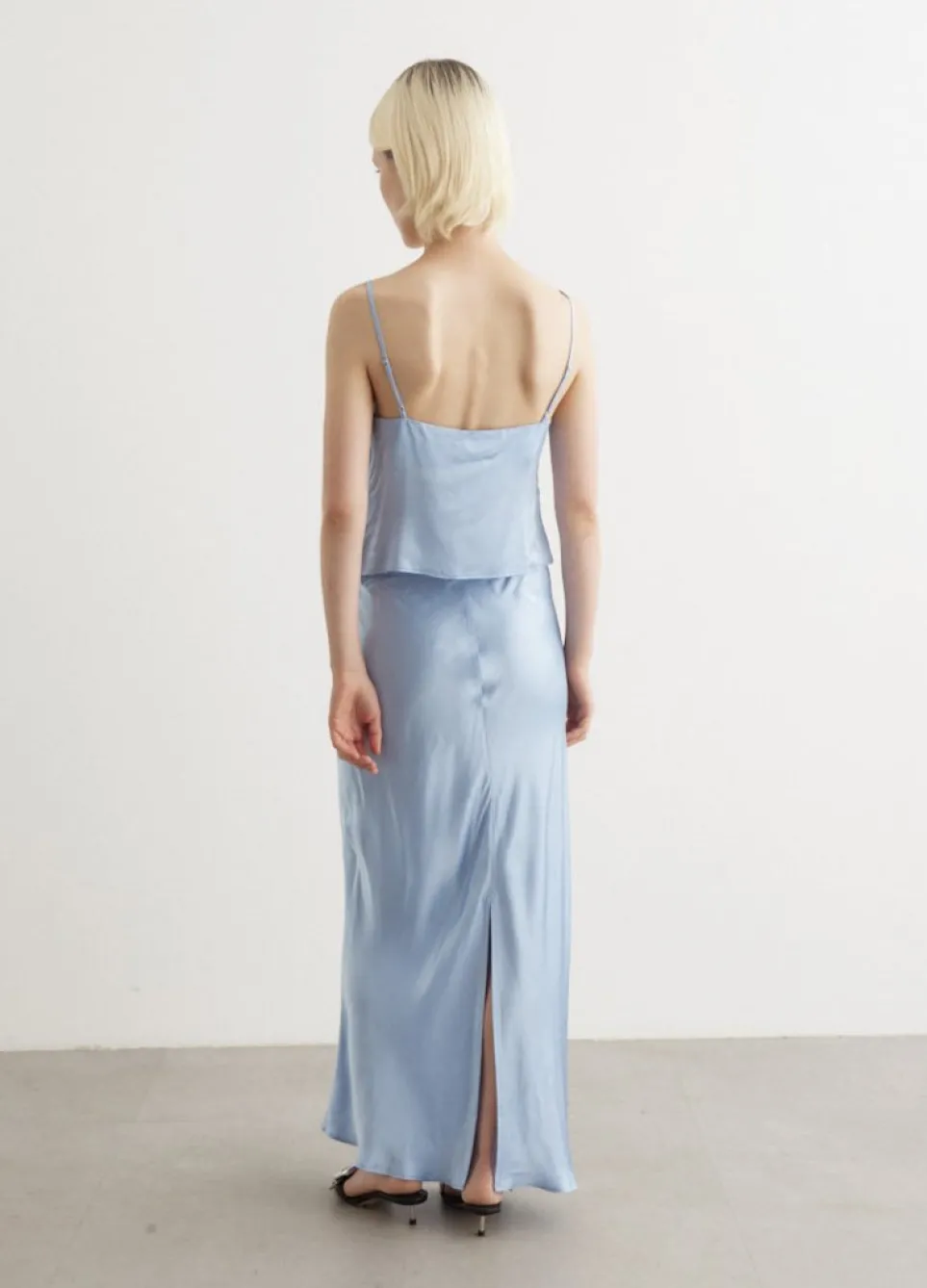 The California-based brand places vintage references at the heart of its design DNA, peppering its collection with ruched and ruffled details. Crafted from silky viscose, the Pauline Top flaunts simplistic elegance, featuring a square neck and spaghetti straps, detailed with darts for a flattering drape.