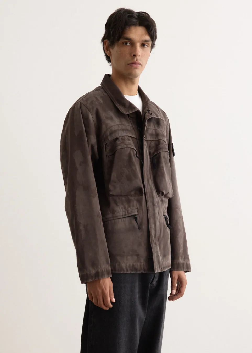 Revered for superior fabrication and distinct style, Stone Island stands out with premium wardrobe staples. Crafted from Raso Gommato fabric for a waterproof, windproof, and breathable finish with a laser-etched camo design, the Raso Gommato 3L Laser Camo Field Jacket is designed with a dyeing process that creates a subtle tone-on-tone effect and adds anti-drop protection. It features multiple zippered pockets, adjustable cuffs, and a hidden two-way zip closure. Finished with the signature white Stone Island research badge on the sleeve.