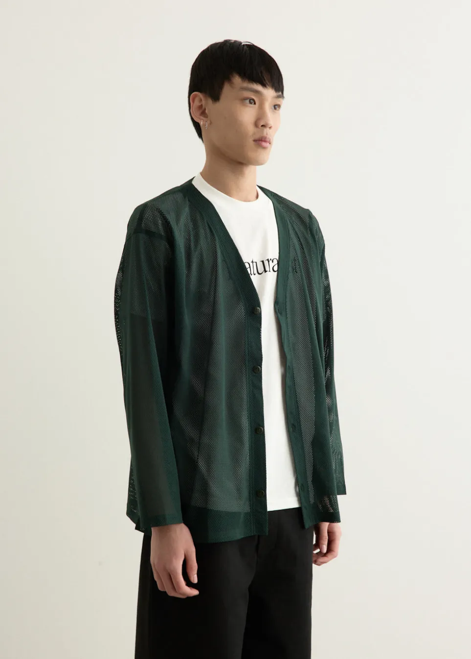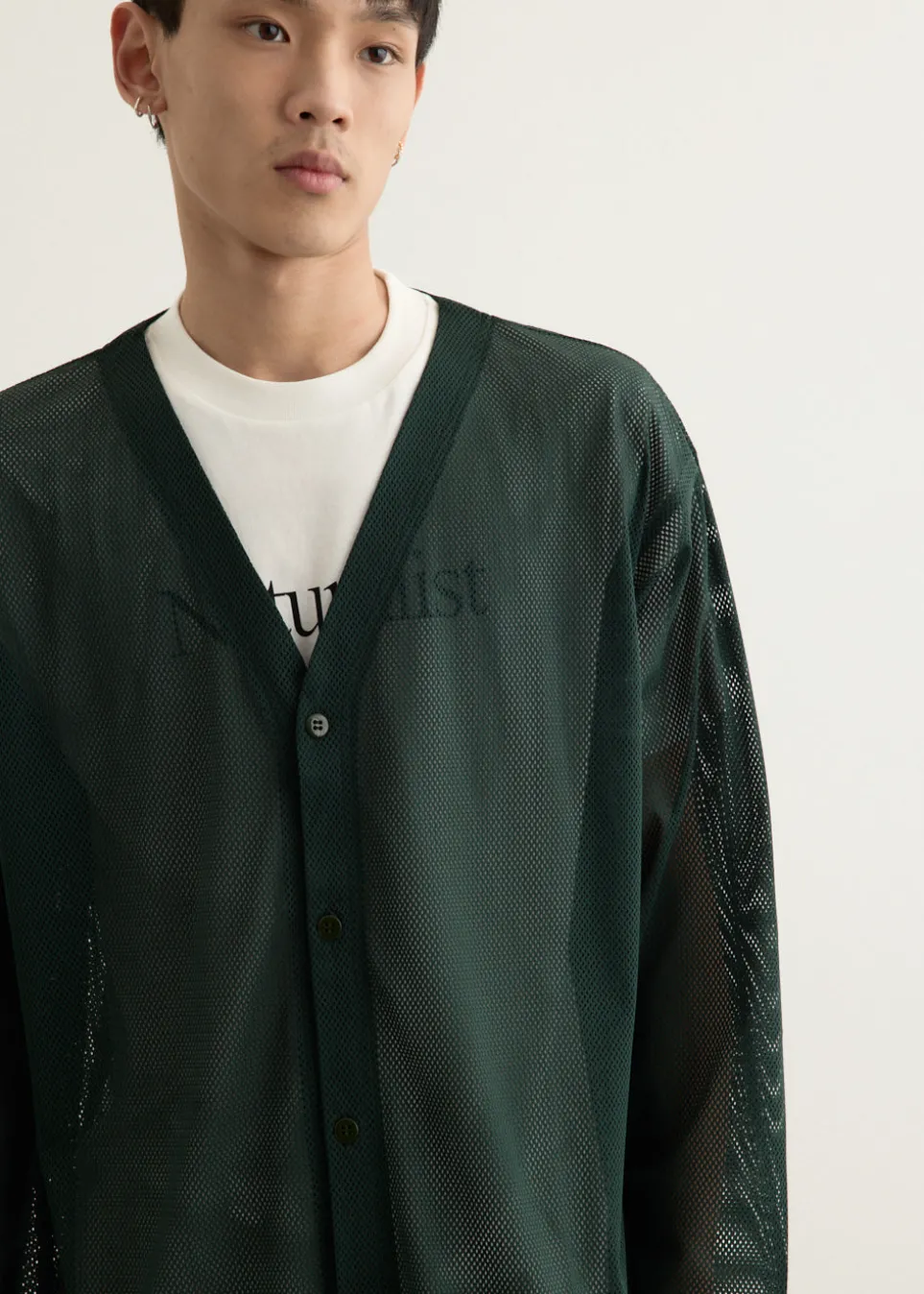 Part of the Nepenthes family, South2 West8 blends fashion and function, drawing inspiration from the serene world of ‘Tenkara’ mountain stream fishing. The label offers practical designs that cater to outdoor enthusiasts while maintaining a distinct, stylish edge. Crafted from a sporty polyester mesh material, this cardigan is a South2 West8 staple. Due to the polyester and mesh construction, the cardigan is highly breathable, making it comfortable to wear even in humid environments. The transparency of the cardigan can also be used to create interesting layers.