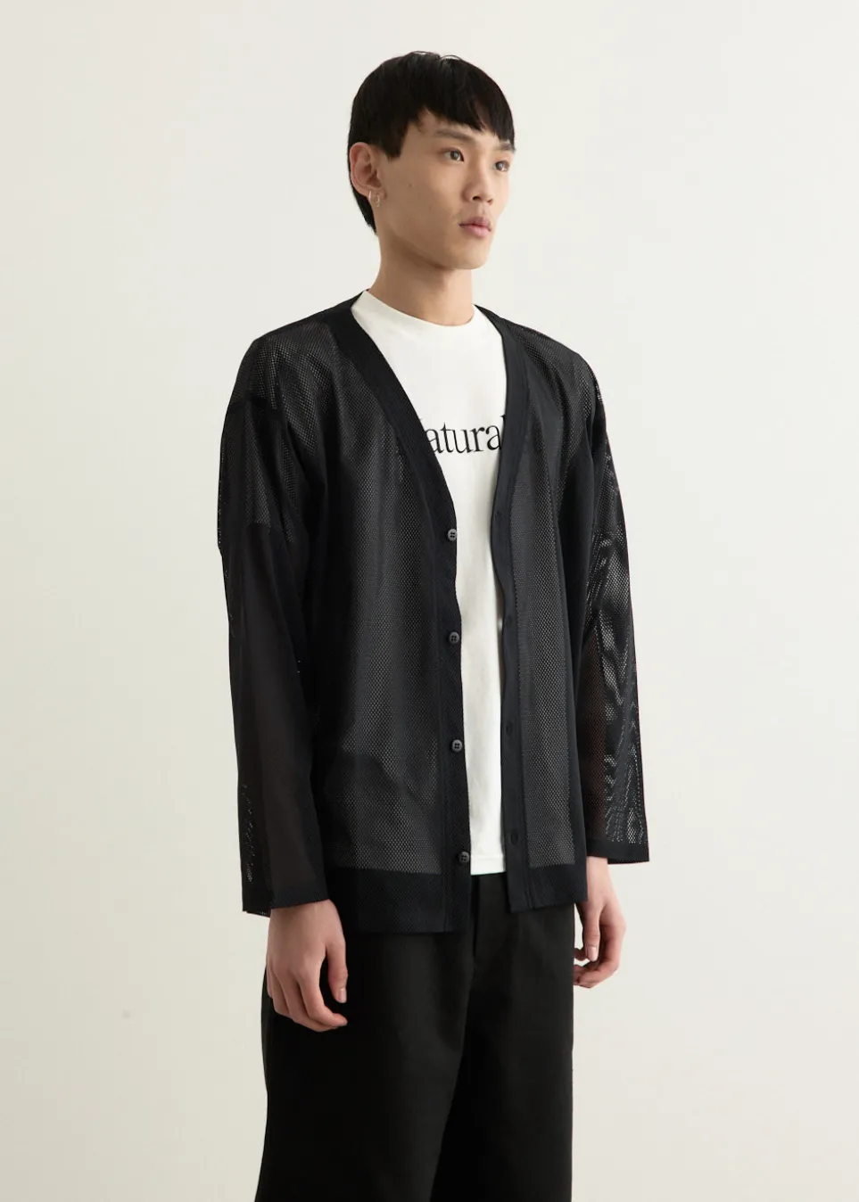 Part of the Nepenthes family, South2 West8 blends fashion and function, drawing inspiration from the serene world of ‘Tenkara’ mountain stream fishing. The label offers practical designs that cater to outdoor enthusiasts while maintaining a distinct, stylish edge. Crafted from a sporty polyester mesh material, this cardigan is a South2 West8 staple. Due to the polyester and mesh construction, the cardigan is highly breathable, making it comfortable to wear even in humid environments. The transparency of the cardigan can also be used to create interesting layers.