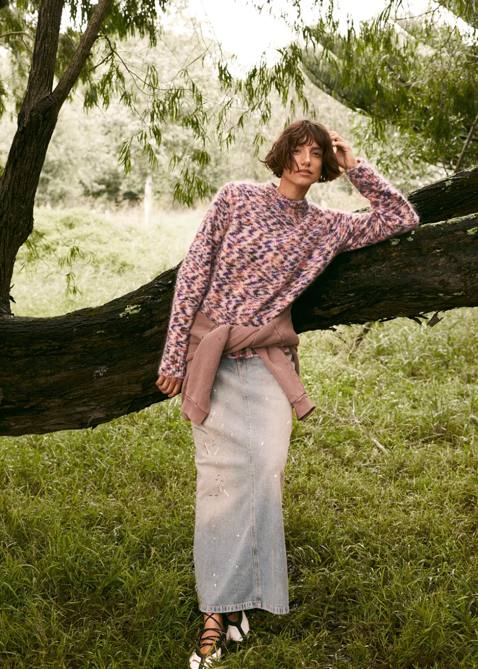 Defined by its experimental take on Scandinavian minimalism, Acne Studios blends technical design with an unexpected palette and androgynous style cues. Crafted from a soft cotton blend, the Tibby Denim Skirt is cut to a straight silhouette, high waist and an ankle length. Detailed with an all-over paint marked pattern, a rear slit at the hem and a leather logo patch at the back.
