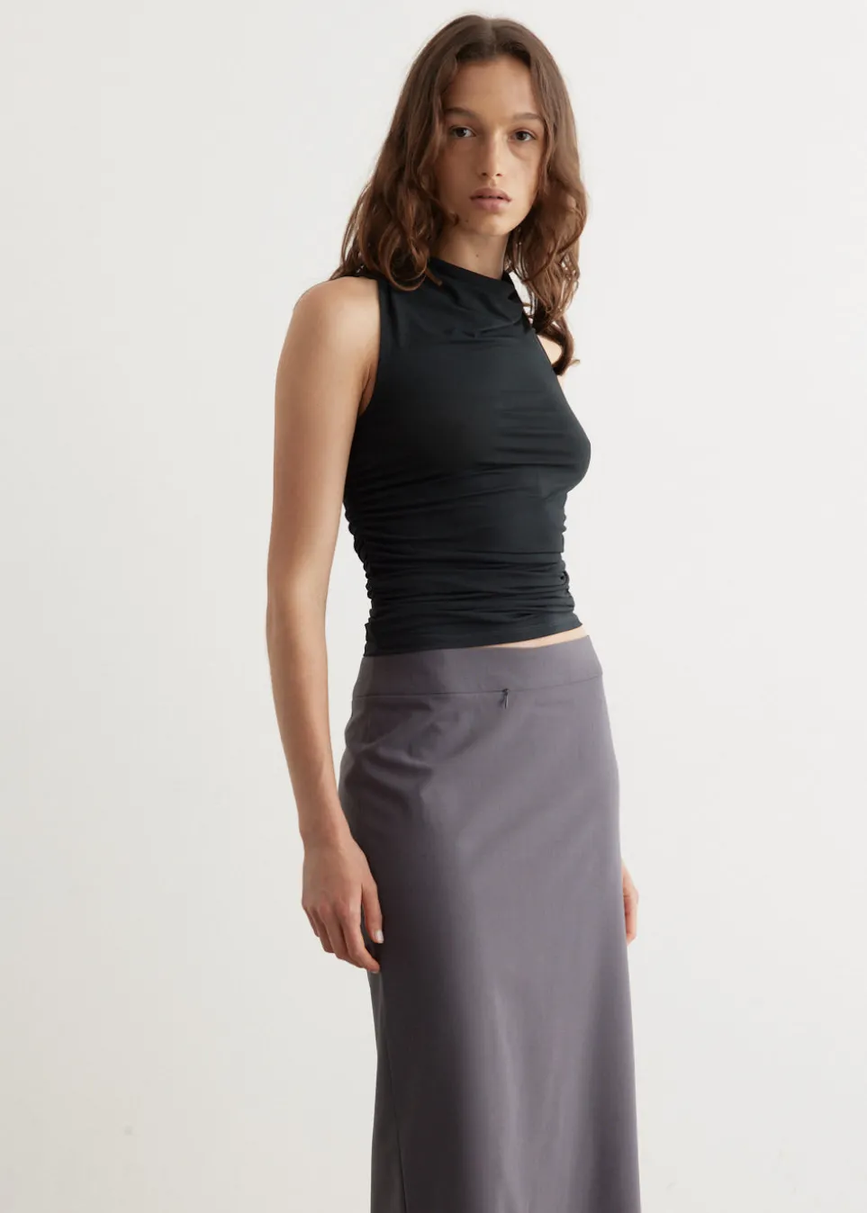 Barcelona-based brand Paloma Wool is renowned for its artisanal quality, retro silhouettes and the art of getting dressed. Crafted from smooth stretch viscose, the Vamos Top features a draped neckline with ruching on the sides.