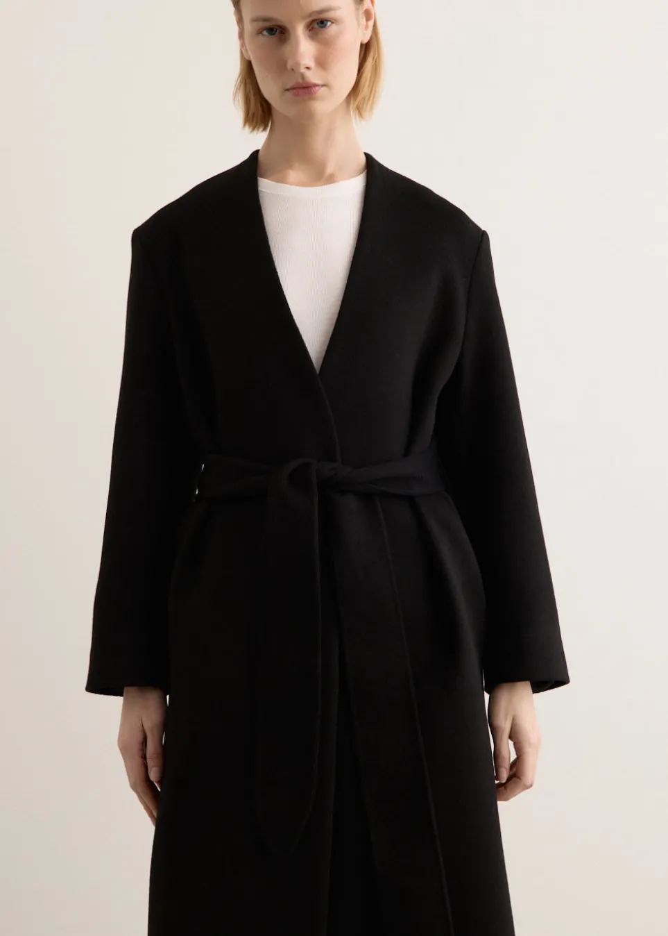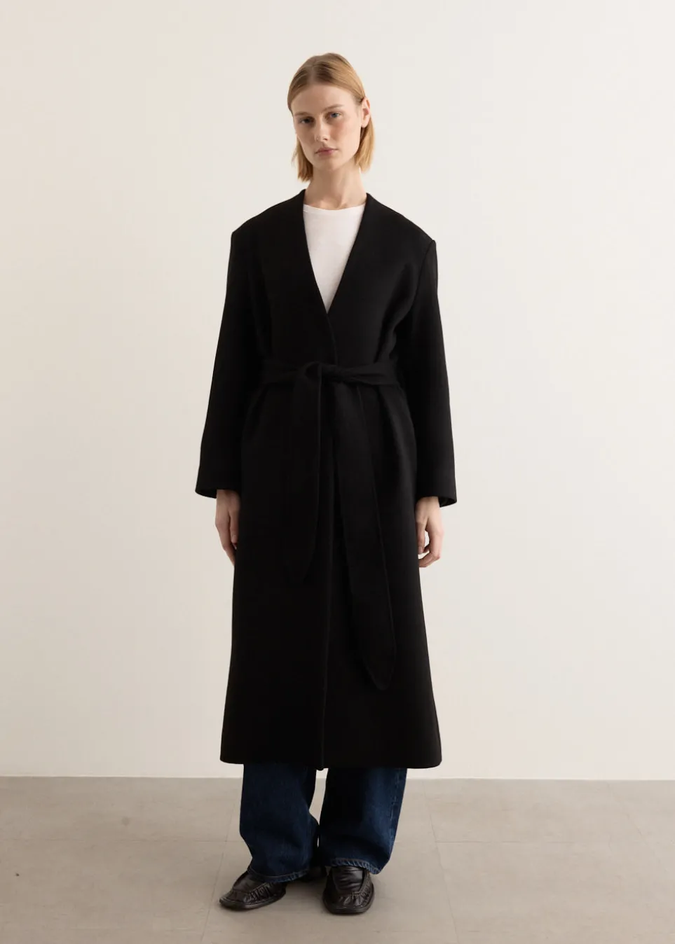 Renowned for its considered footwear, A.EMERY has expanded into ready-to-wear, offering timeless, versatile pieces. Founded in Melbourne with a focus on refined minimalism and premium materials, the brand embodies understated elegance season after season. Crafted from a luxurious wool blend, the Veronique Coat is tailored to a relaxed fit. Featuring a collarless design, belted waist tie, centre back vent and generous pockets set within the side seams.