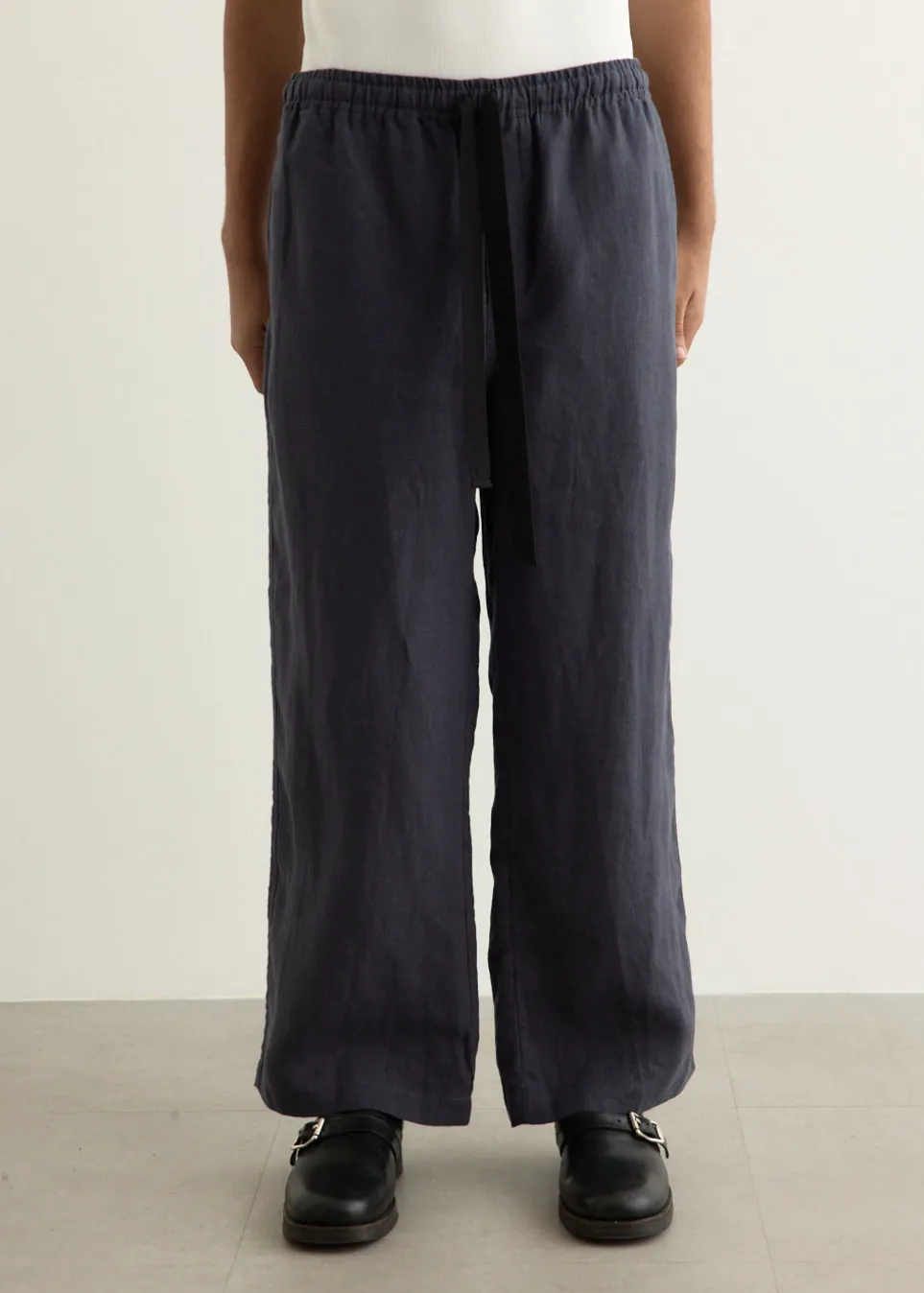 Founded in 2017 by Richard Jarman, COMMAS is a Sydney-based swim and resort-wear label with a focus on quality and the essence of modernism. All fabrics are sourced from Europe and Japan, made in some of the oldest mills in the world. Made from textured natural linen, the Wide Leg Linen Trousers is cut to a relaxed fit with a wide leg silhouette. Featuring an elasticated waistband with a wide herringbone drawstring, finished with back welt pockets with a contrast button closure.